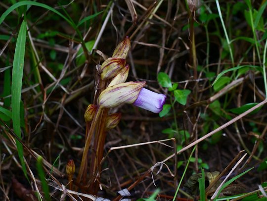 野菰則默默地躲在草下偷取養分,雖然寄人籬下,卻也開出優雅脫俗的花朵。 |