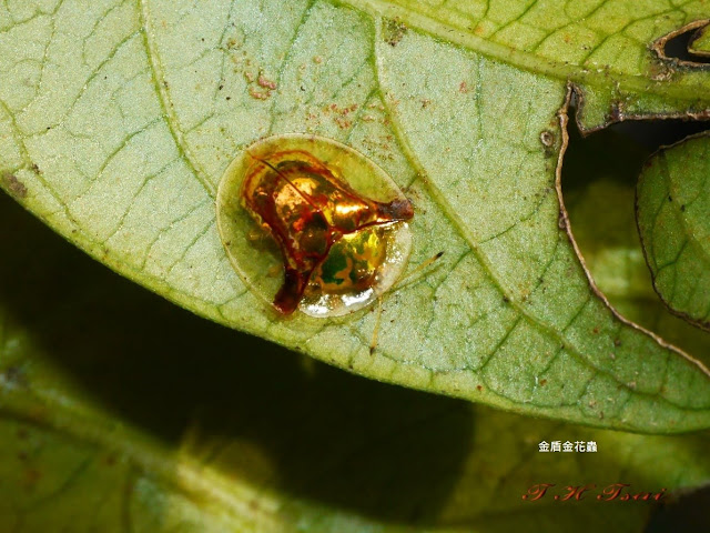 盾龜金花蟲喜好溫暖的陽光,趁著冬陽出來的時候做日光浴。 |