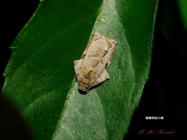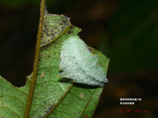 角斑栗刺蛾幼蟲卻看上軟毛柿的粗葉。 |