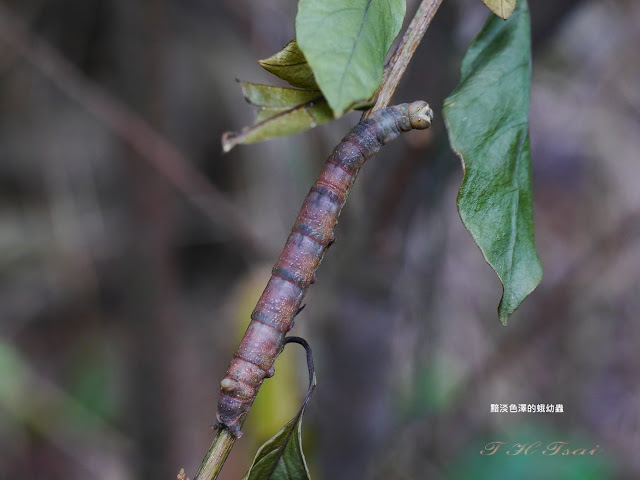 黯淡色澤的蛾幼蟲則正要離開山桂花枯葉尋找新鮮嫩葉飽食一餐。 |