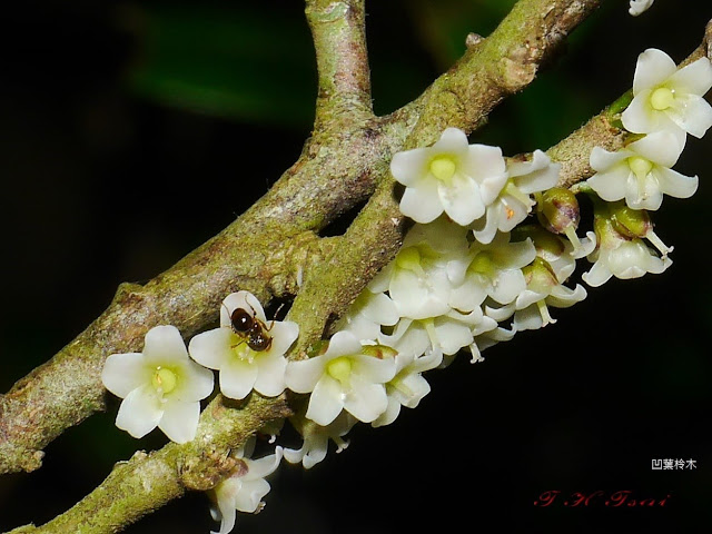 每次志工們復育時候總是被動植物的美麗身影給吸引住而駐足在步道上,天氣寒冷難得放晴,凹葉柃木朵朵小花盛開,蜜露吸引著昆蟲前來覓食。