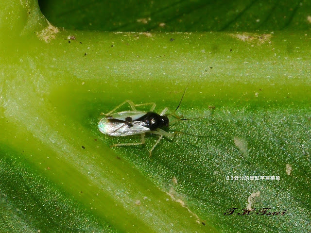 0.3公分的黑點芋盲椿象成群聚集。 |