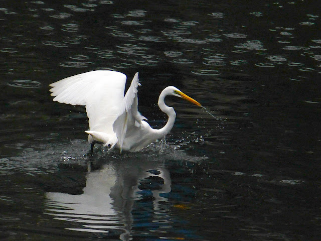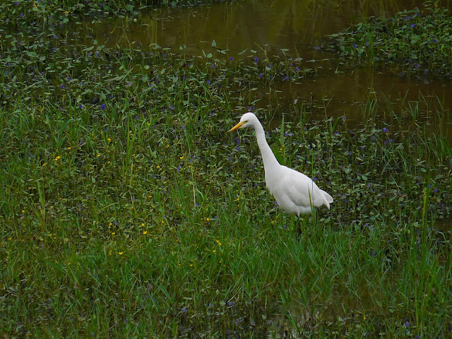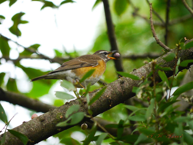 實驗田和西側的四分溪,魚蝦和小蟲成群聚集,是中白鷺、大白鷺、翠鳥、灰鶺鴒、白腰草鷸、和磯鷸,施展獵捕技巧的地方。 白鶺鴒則偏好在大樹下的草地追逐小蟲,數年來未見的候鳥,白眉鶇,終於趕上雀榕的最後一波成熟果實,歡喜的大啖榕果的甜美。