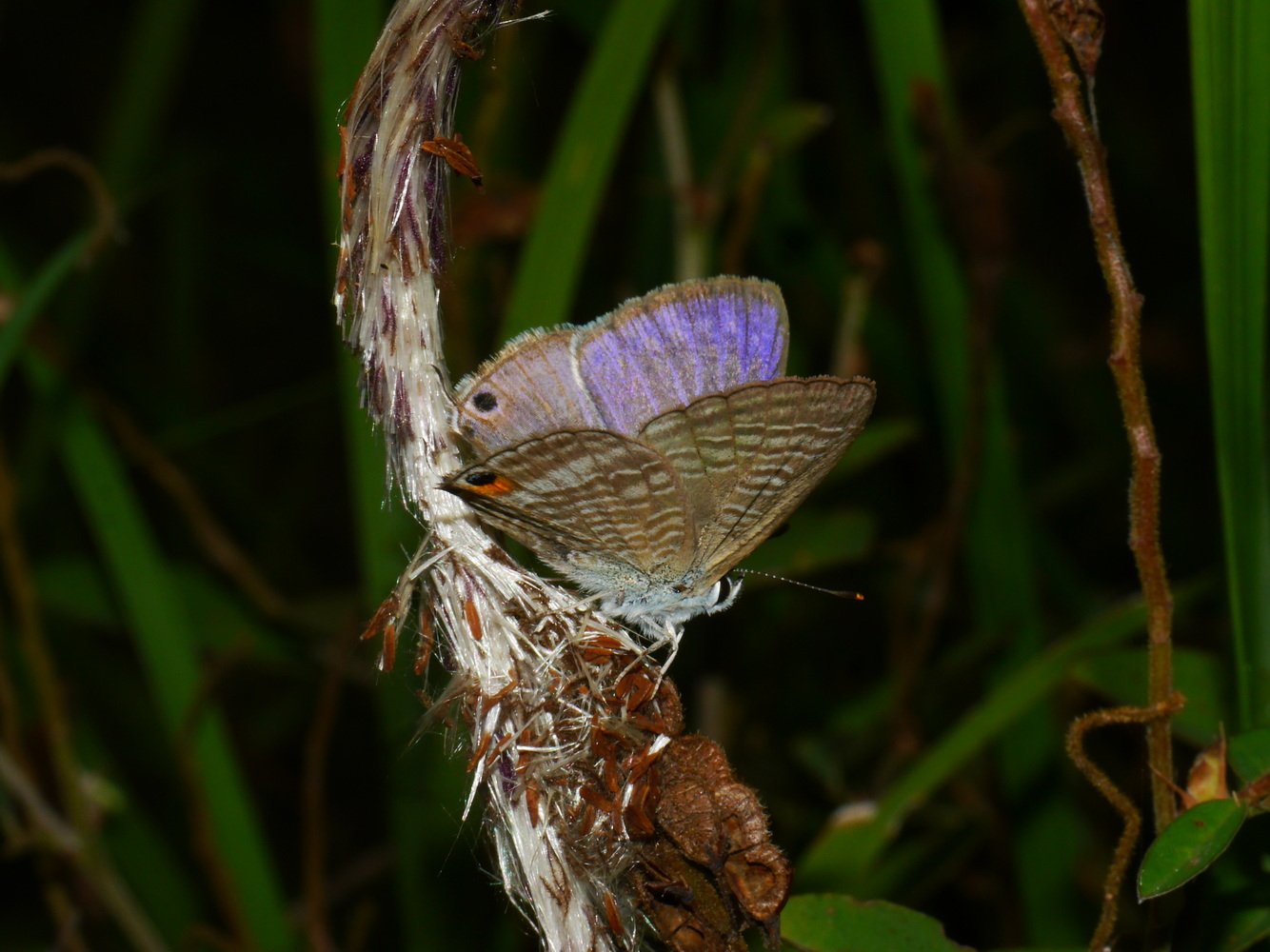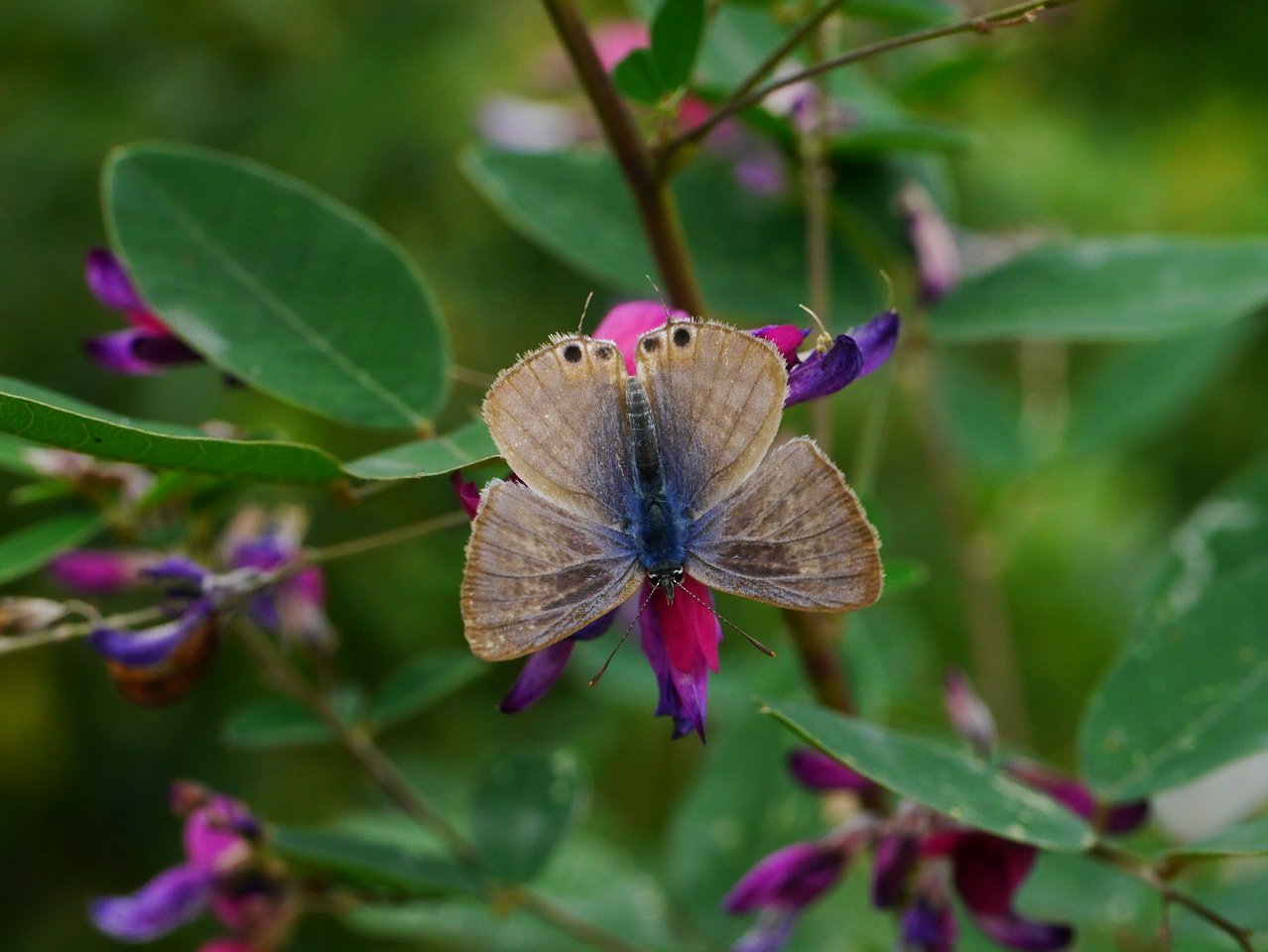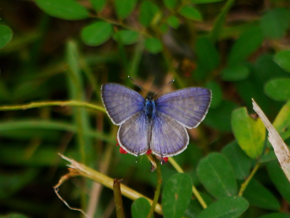 只要側耳傾聽,你就會聽到吵雜的振翅聲,那是蜜蜂勤奮的標記,牠們不斷地在花叢中穿梭忙碌。而小灰蝶就安靜多了,但每一種小灰蝶都有他們各自的喜好,細灰蝶(角紋小灰蝶)總是極盡挑剔的忙著尋找毛胡枝子的嫩芽產卵,牠的卵小到幾乎眼睛都看不到,折列藍灰蝶(小小灰蝶)則鍾情於蠅翼草和雞眼草,豆波灰蝶(波紋小灰蝶)就沒那麼挑剔了,只要是豆科植物,大部份都受牠歡迎。藍灰蝶(沖繩小灰蝶)和黑星灰蝶(台灣黑星小灰蝶)則是被大量的紫色小花所吸引,純粹是來訪花吸蜜的。
