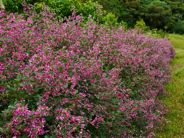 九月,秋日的北風將黃頭鷺從北方帶來的時候正是數種豆科植物陸續開花時。每年都有不少的假地豆花爭先登場,但真正的盛宴是十月的毛胡枝子。