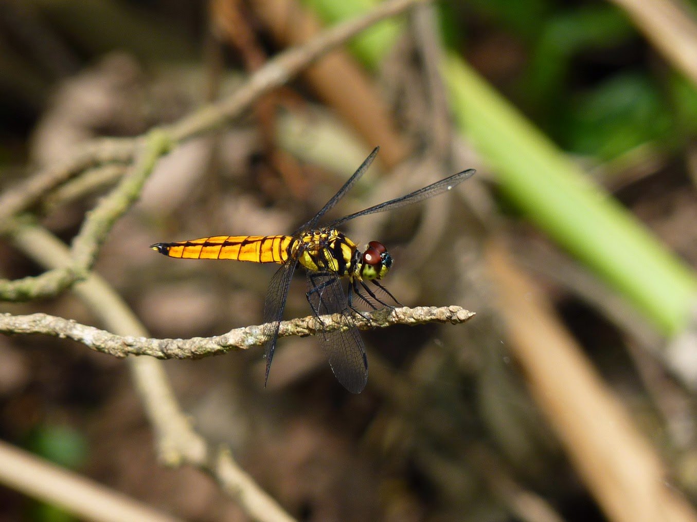 廣腹蜻蜓(未熟雄蟲) 身長約4公分,腹部寬扁,雌雄異色,喜好水邊植物覆蓋良好的陰暗環境。 |