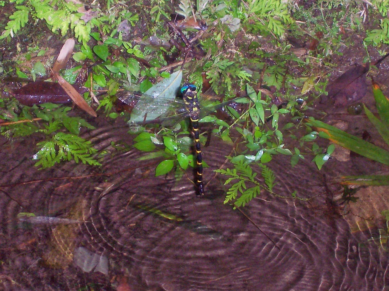 無霸勾蜓(產卵) 台灣最大的蜻蜓,身長超過10公分,目前唯一的保育類蜻蜓。常會在空中來回超高速巡弋。 雌蜻蜓會尋找隱密的乾淨淺水區,以直立插秧的方式,垂直插入水底的泥沙中產卵。 |