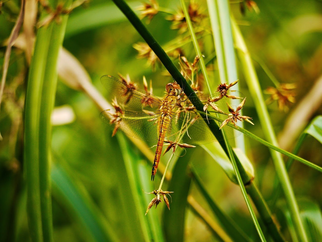 薄翅蜻蜓 身長約4.7公分,雌雄不易分辨,翅薄透明,停棲時不易發現。常見於草原田野,具有遷徙能力。 |