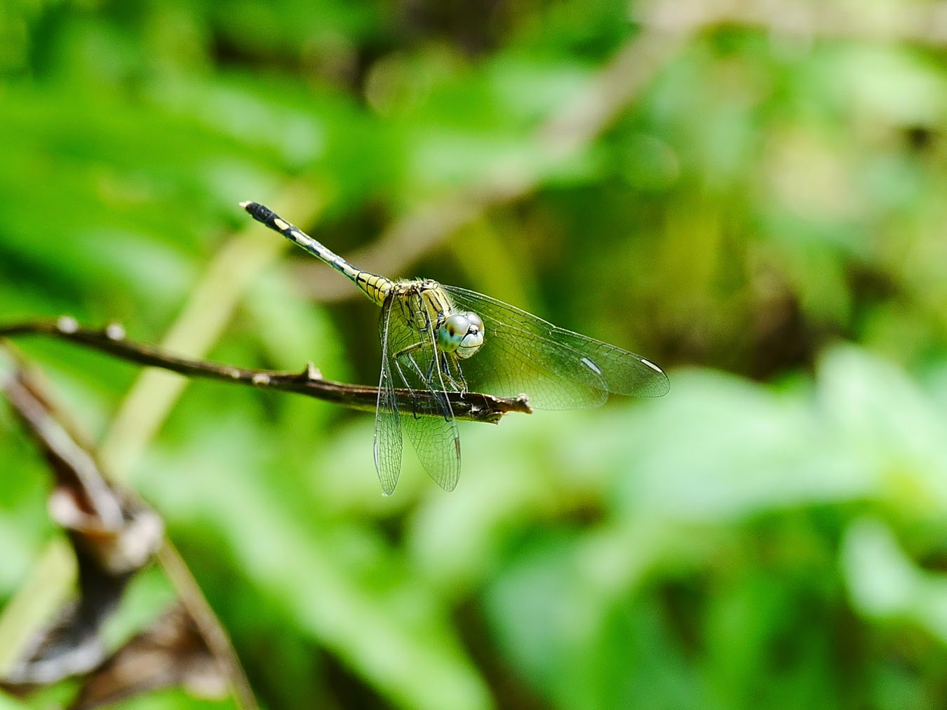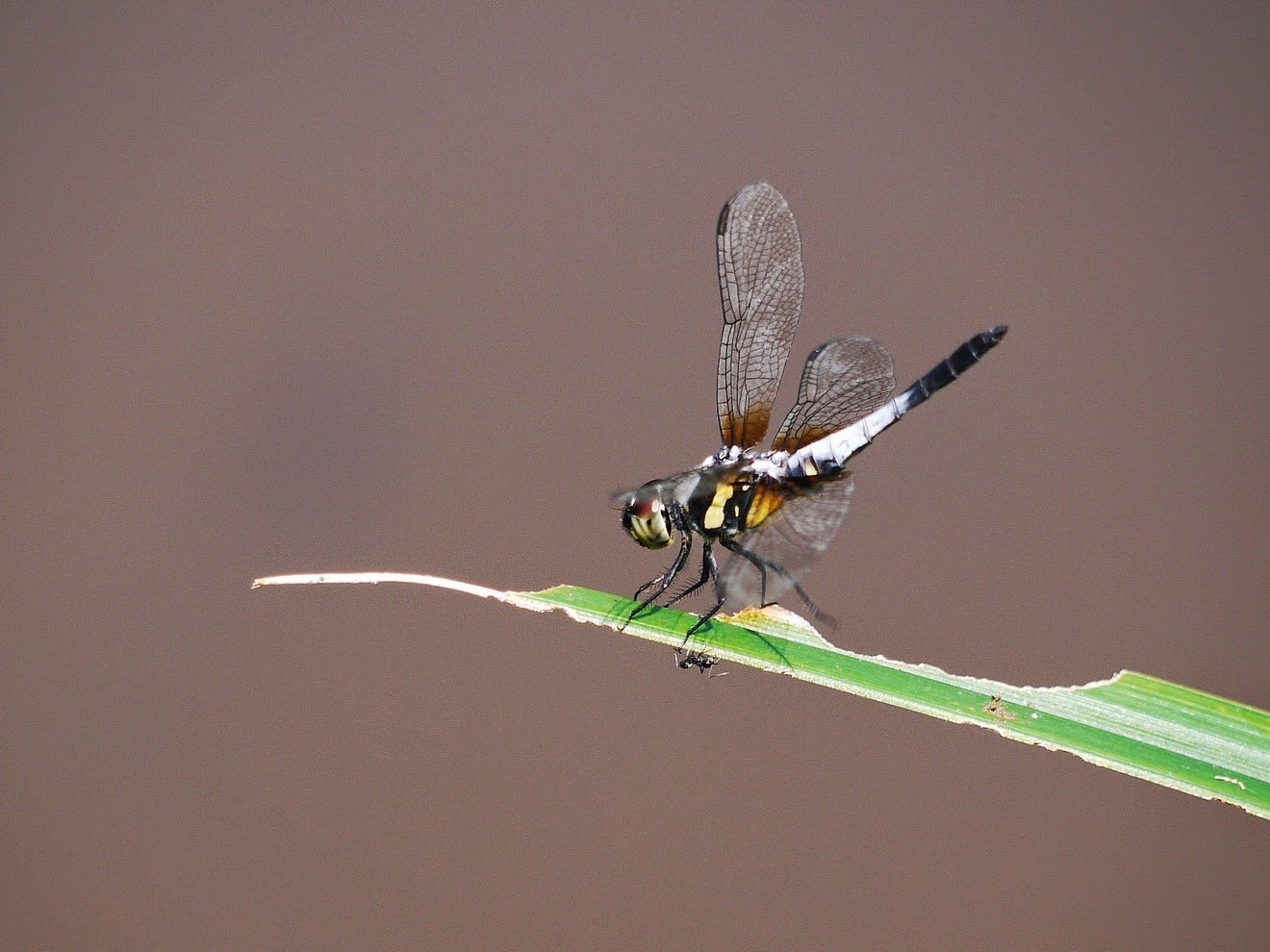 侏儒蜻蜓(雌) 身長約3公分,體型小雌雄異色,雌蟲常在池塘附近草地活動,以點水產卵。 |
