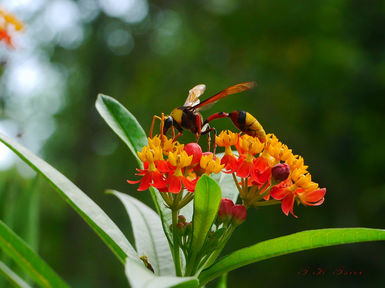溪流區在11月的豔陽高照下,仍有蜻蜓和豆娘來回盤旋,不時可見白痣珈蟌、紫紅蜻蜓、和紅腹細蟌飛舞,連黃胸泥壺蜂都還在忙碌的吸取花蜜,樺斑蝶則急於尋找產卵的地方。