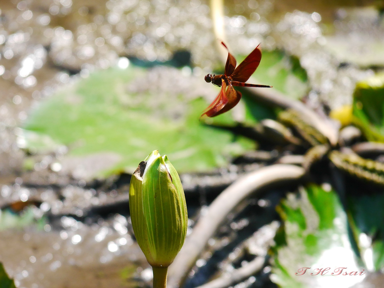荷花睡蓮區則是蜻蜓展現飛行技巧的地方,這個季節仍可看到善變蜻蜓盤旋飛舞,睡蓮池的泥地上則是台灣黃蝶和散紋盛蛺蝶的最愛,牠們常在泥地上吸取礦物質。