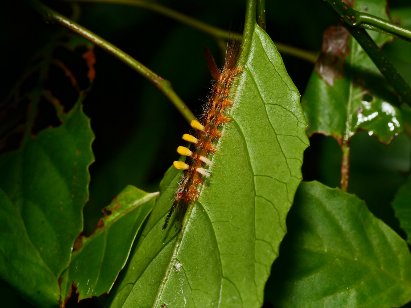 台灣山桂花上的小白紋毒蛾幼蟲 |