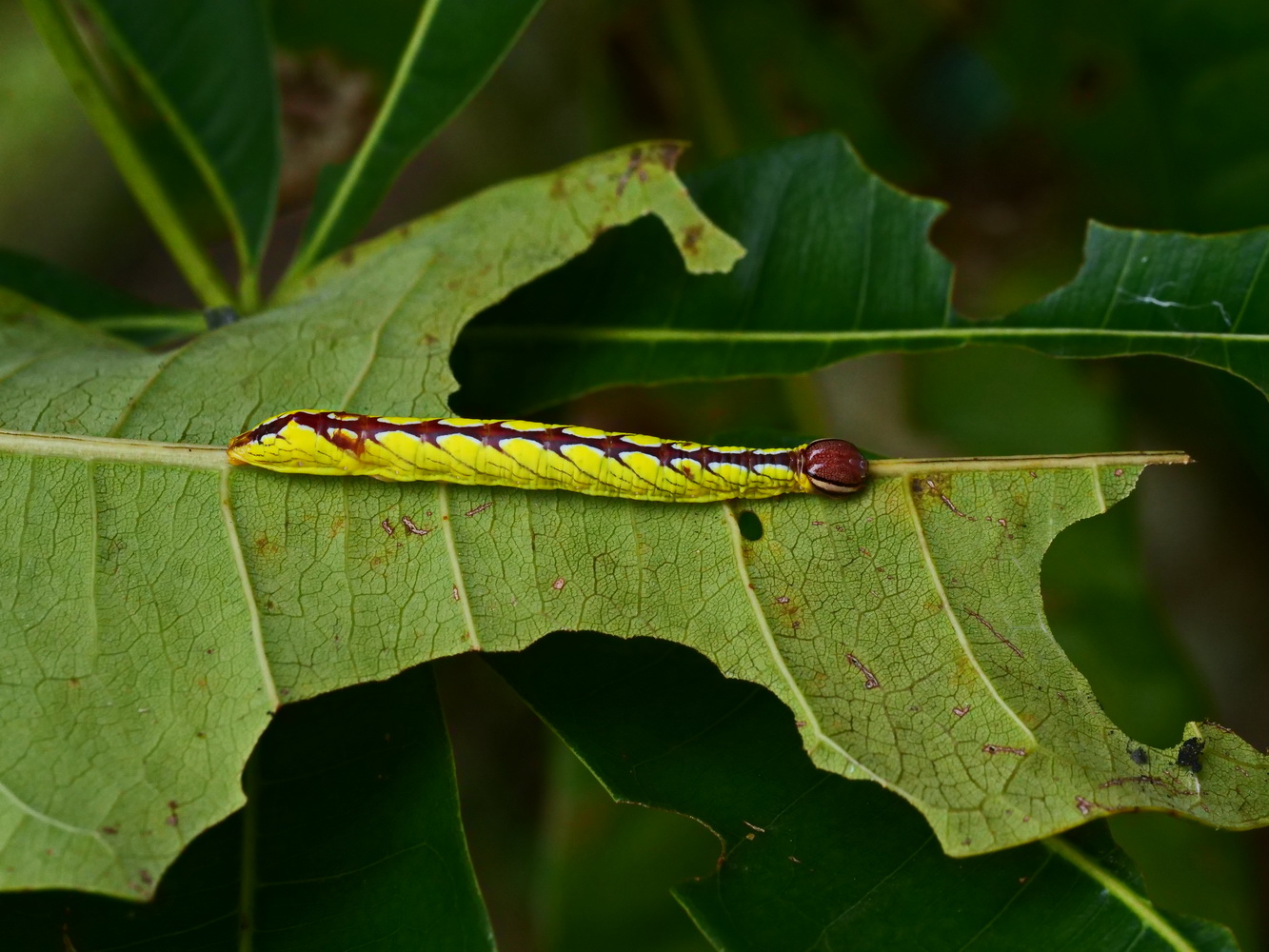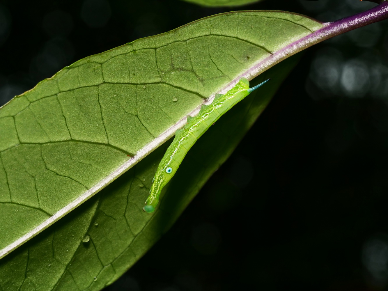 華八仙葉上的雙斑白肩天蛾幼蟲 |