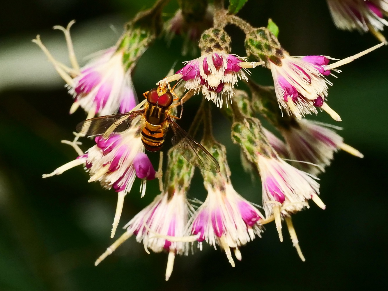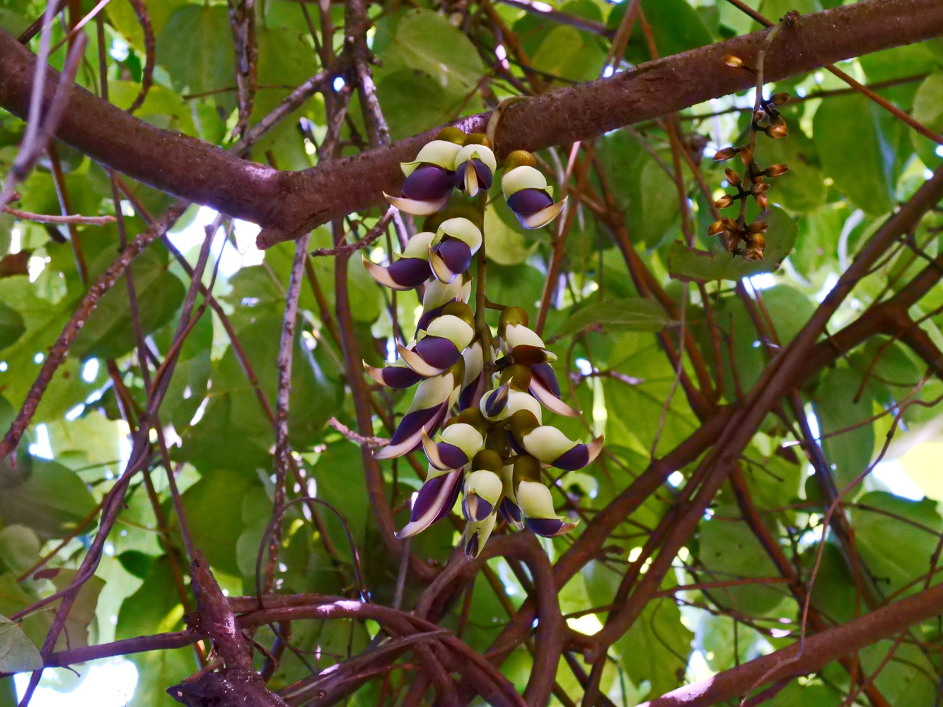 院區世仁亭旁多年不見的假菝葜,再次現蹤,花序深藏於九節木的枝葉間,紅色的花柄非常吸引人的注目; 旁邊的過山龍的花仍有少數仍在開放,造型奇特的花朵是菊科的異類,花期雖已近尾聲,但仍受眾多食蚜蠅和蜜蜂的歡迎. 復育了11年的血藤,今年終於大開放,超過40 串以上的大花序將陸續開放到三月。