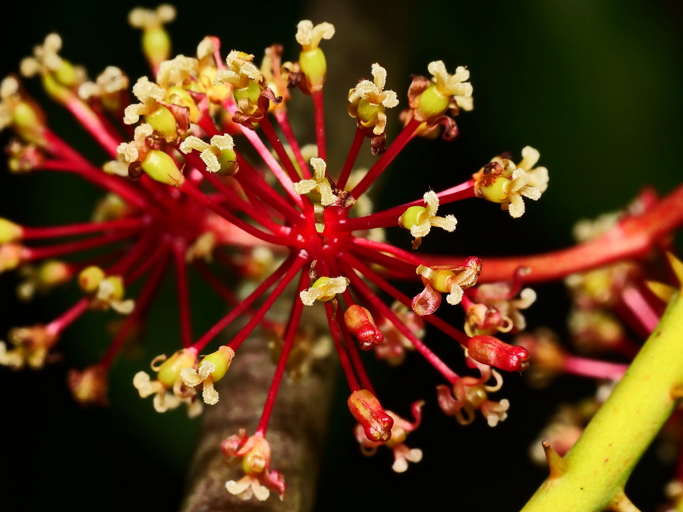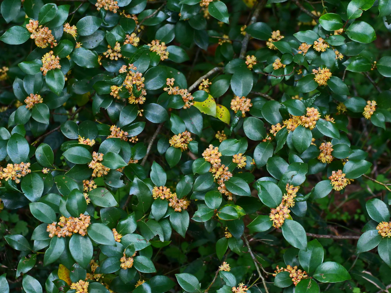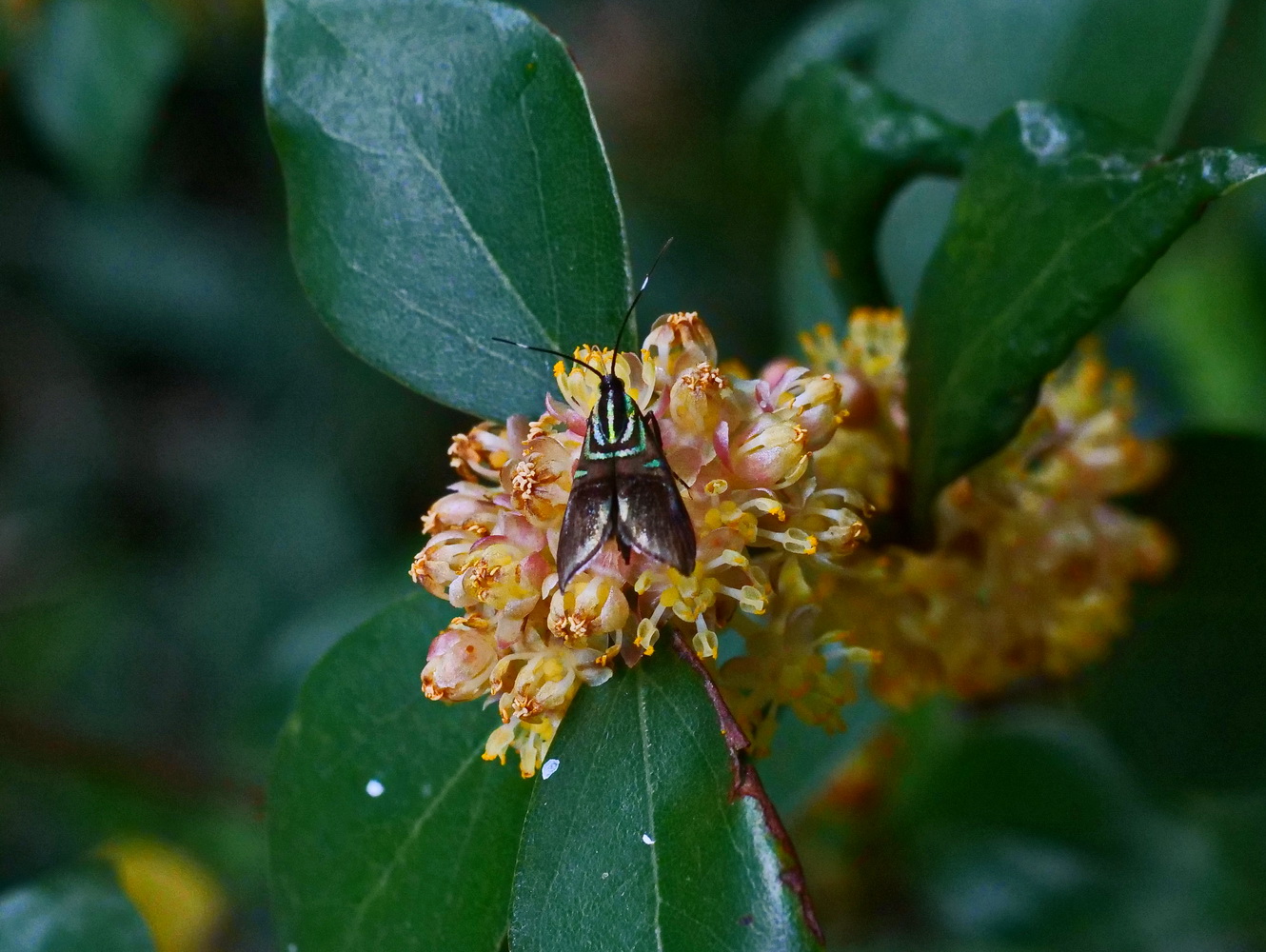 國家生技研究園區的內苳子雌花盛開,花小蜜少,蝴蝶興趣缺缺,但卻吸引了不少蜜蜂和食蚜蠅聚集; 院區的內苳子,因過度的修剪,幾乎無花可賞,僅存一棵雄株躲在小森林的後緣而幸免於難,盛開的金黃色小花獲得許多小舞蛾的青睞。