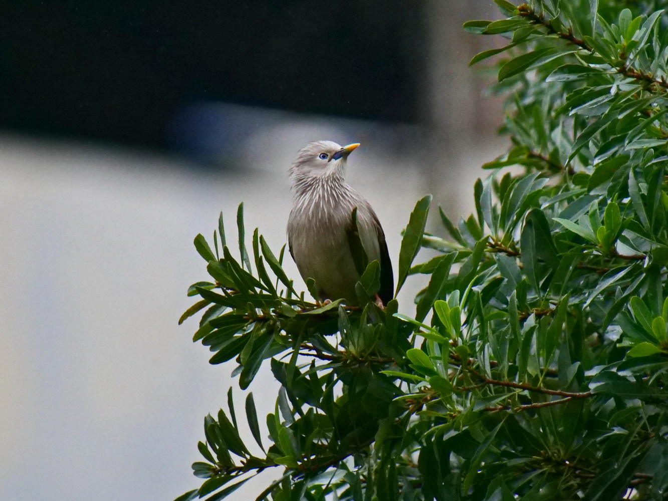 灰頭椋鳥停棲在楊梅樹上