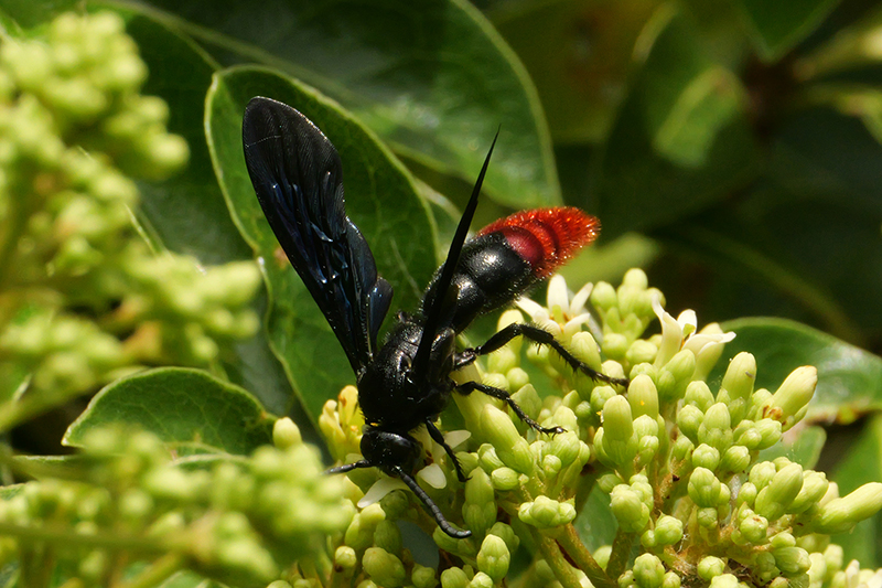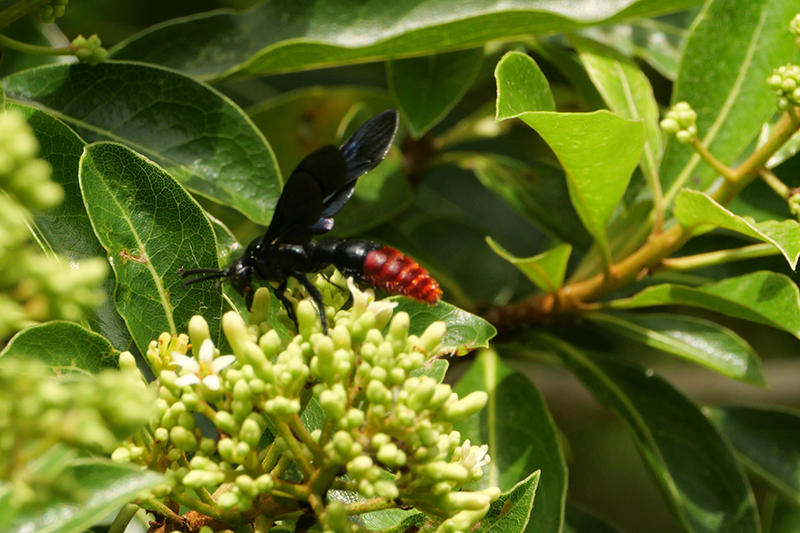 目前是台灣海桐的花期, 運氣好可以觀察到超級稀有的紅腹土蜂