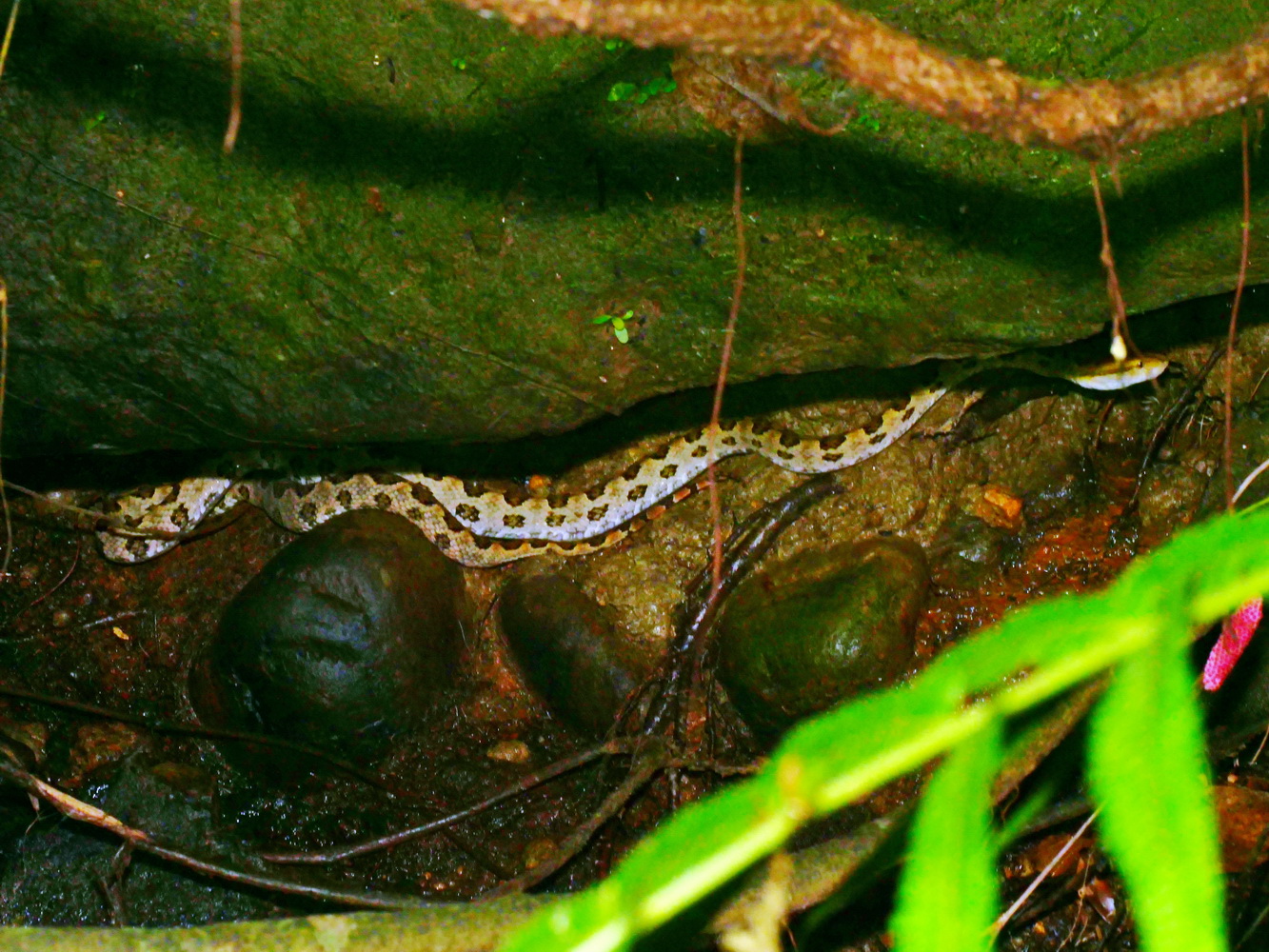 8月最後一次的夜間調查,氣溫頗高悶熱異常,行動就從暗夜的湖光山色中揭開序幕. 白天太陽炙熱,所有的動物都紛紛走避,一到夜晚,在陰暗的底層就變得熱鬧非凡,蟲鳴蛙叫蛇爬行,各憑本事追趕捕獵,吃和被吃在暗夜的掩護下不斷的進行.