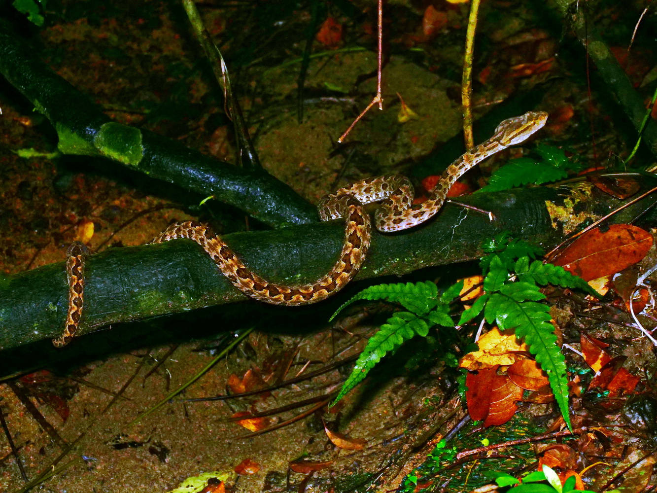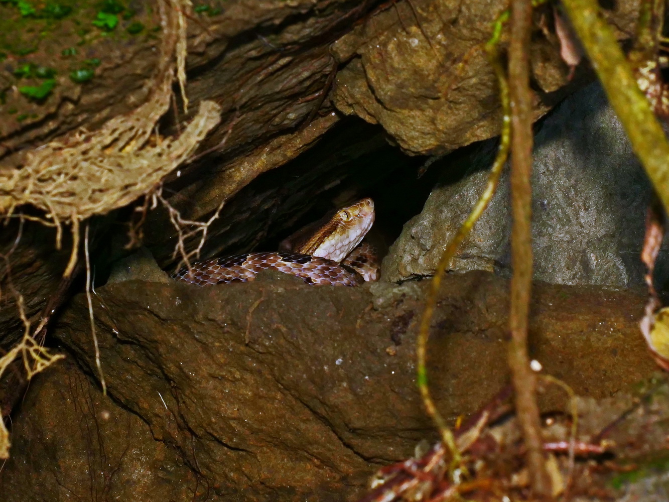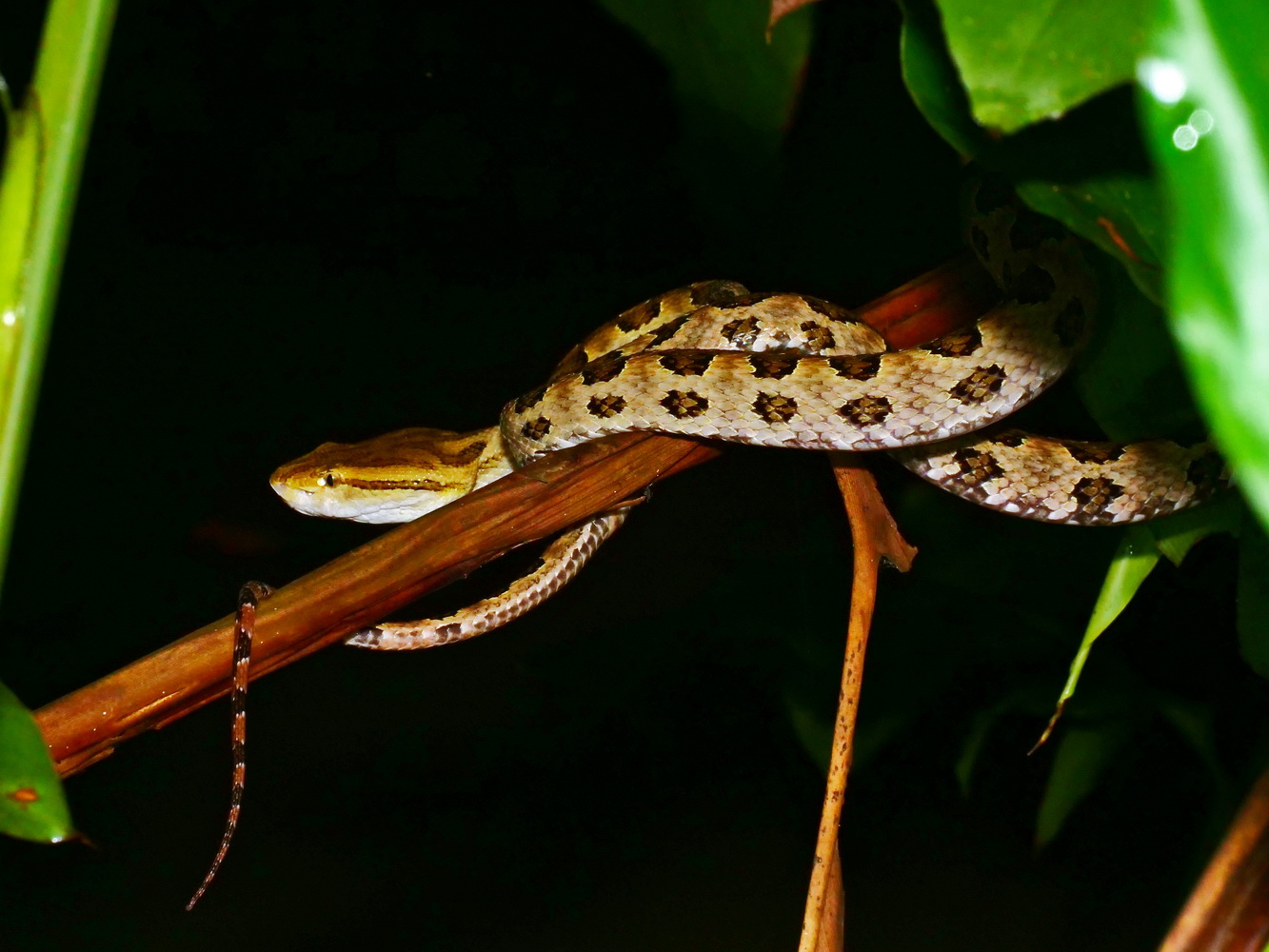 晚上移除外來入侵種斑腿樹蛙母蛙8隻、公14隻、幼蛙3隻、卵泡1坨。發現大頭蛇1條, 4條龜殼花. 台北樹蛙復育區就發現3條龜殼花,全部都是老朋友(有標記的).