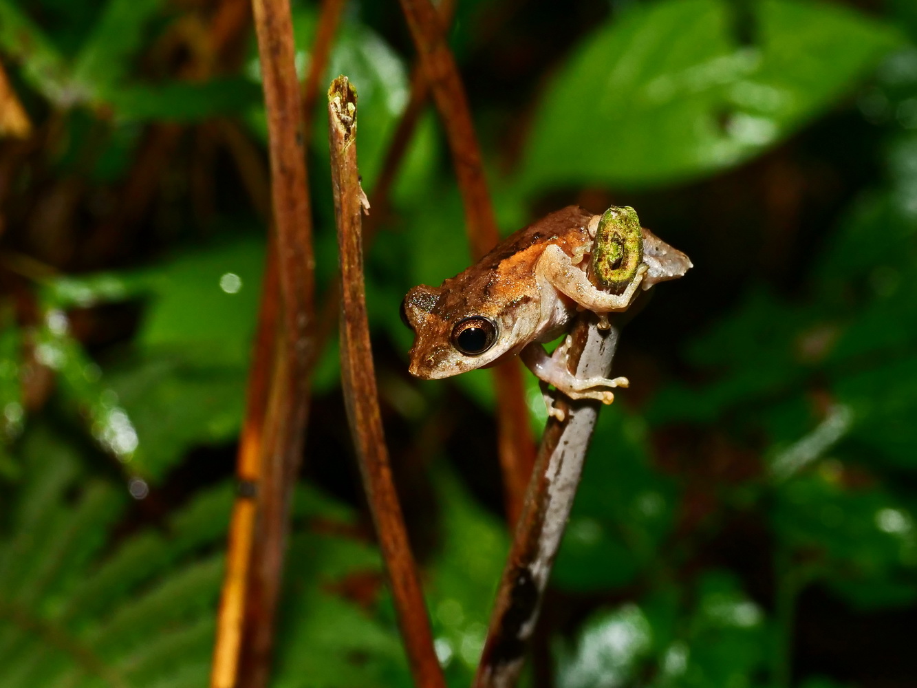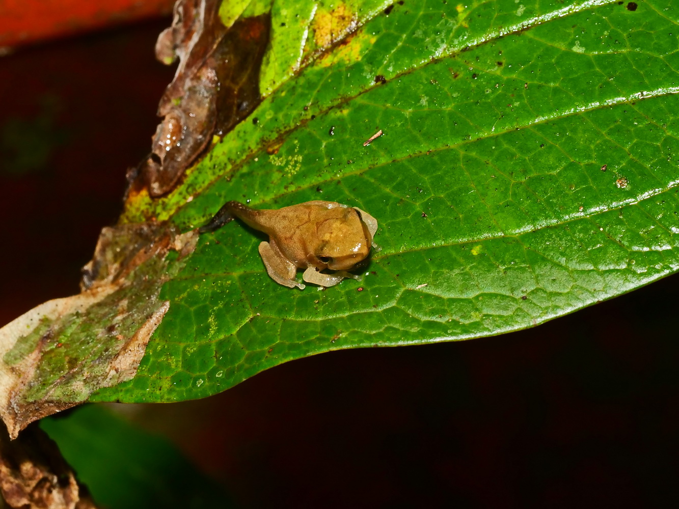 外來種的斑腿樹蛙(剛上岸帶著尾巴小蛙) |