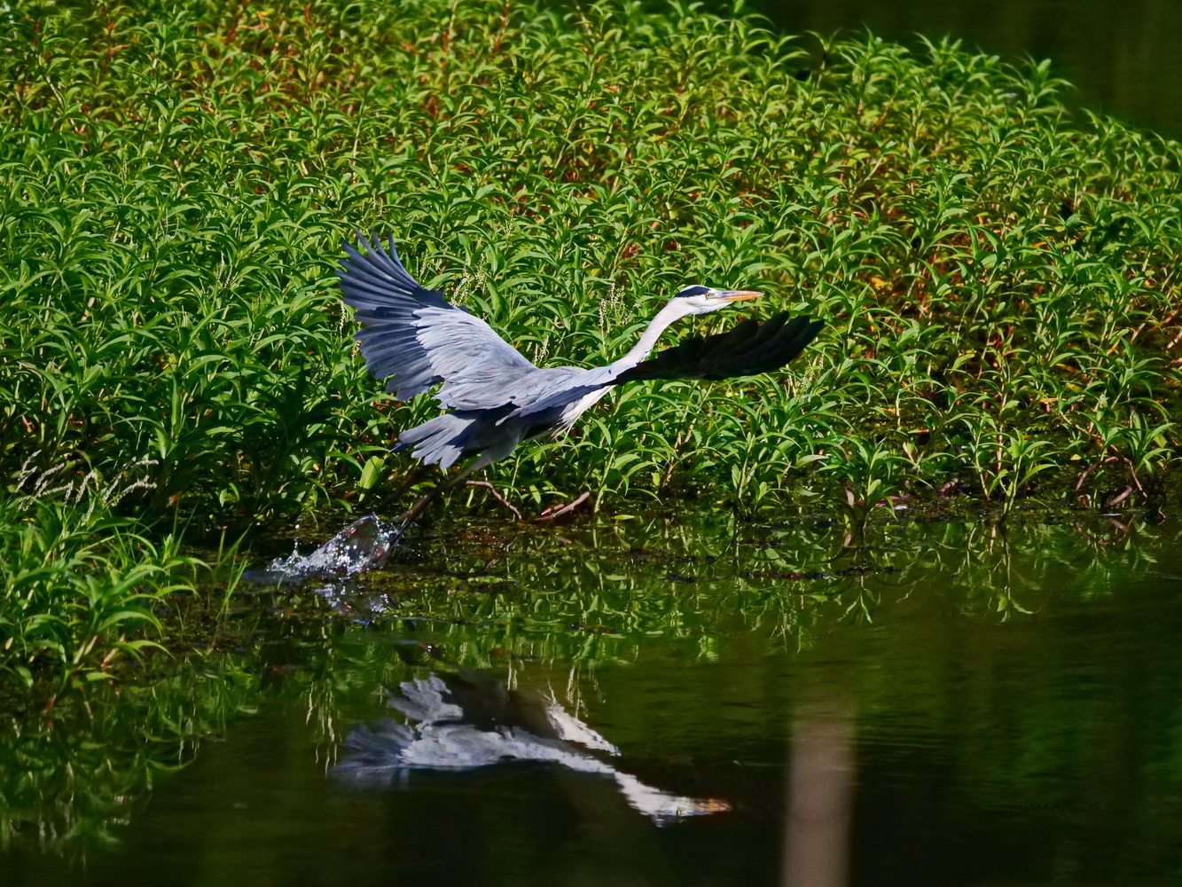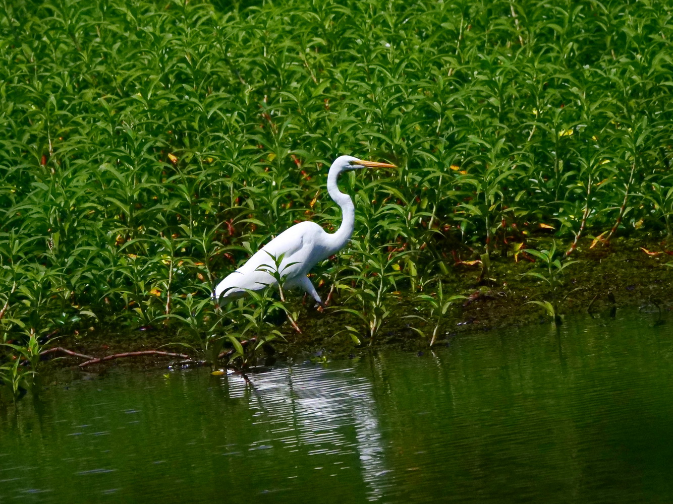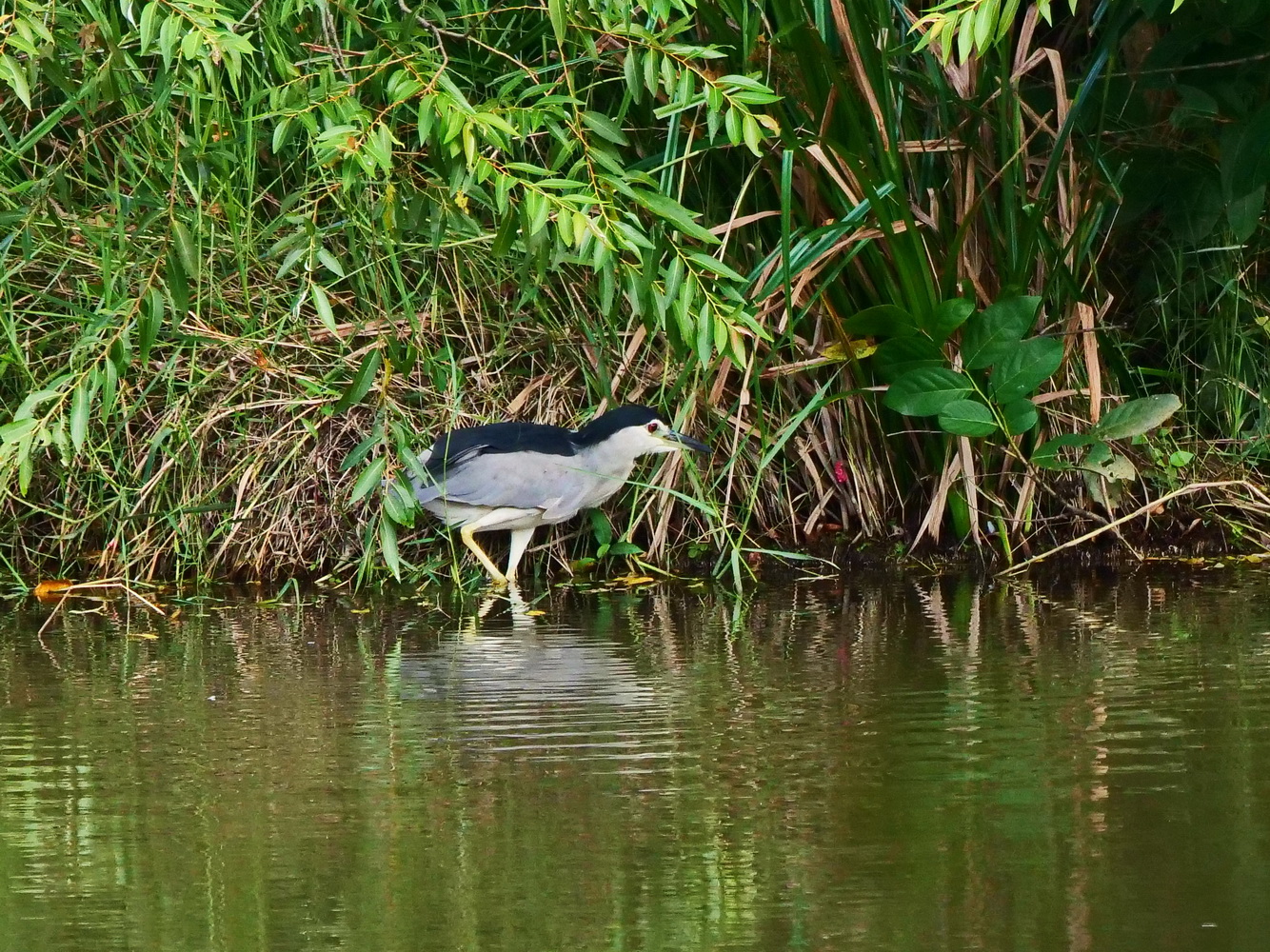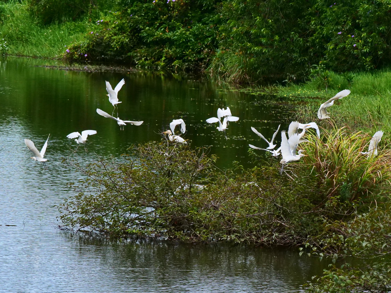 十月,寒露已過帶來了一些深秋的氣息,雖然也隱藏了候鳥到來的訊息,但白天依然艷陽高照,空氣中也無絲毫涼爽的感覺過境的黃頭鷺,僅有少部份停棲在滯洪池內的樹上短暫休息,數量卻遠少於往年的盛況,其他過冬的候鳥更是難得一見,只有蒼鷺,大白鷺,灰鶺鴒,磯鹬從不缺席。 但,滯洪池內仍然能夠見到到全年的住客 小白鷺夜鷺紅冠水雞小鷿鷈翠鳥, 高空中也時常有大冠鷲和鳳頭蒼鷹在飛舞