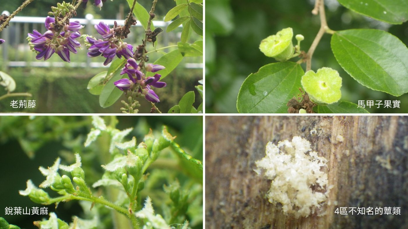 第二區在保線步道東側水保溝入口有大花咸豐草和空心蓮子草要去除在疏花魚藤附近有小花蔓澤蘭、粉黃櫻絨花、大花咸豐草和牽牛花要去除,靠近水泥步道前右側邊坡合果芋又冒出不少,有用枯枝貼紅膠帶標示請移除!在保線步道西側有大花咸豐草和牽牛花需要去除保線步道有許多植物是上個月標示過的, 先集中人力整理保線步道。二區的功課是找到武靴藤和白鶴蘭的花。白鶴蘭資訊不能傳到iNaturist。崗哨建築物周邊有牽牛花環繞請移除。
