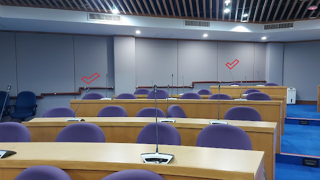請大家座位盡量坐中間位置~每個座位都有麥克風,桌上型的麥克風絕對不能往下壓!