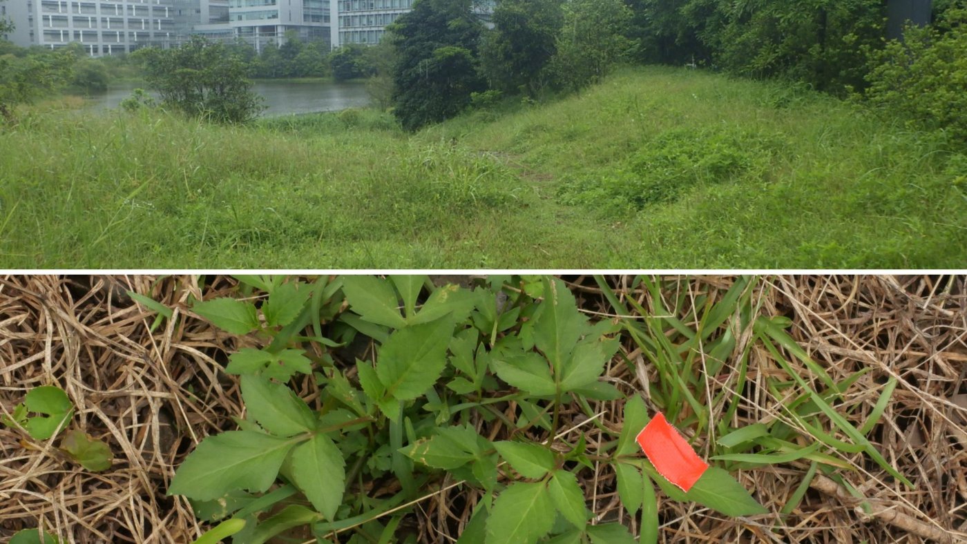 第四區在耳葉刺蕊草區清除克菲亞草、大花咸豐草、藿香薊、小花蔓澤蘭和小花寬葉馬偕花。在樹木銀行區清除小花寬葉馬偕花、頭花香苦草、小花蔓澤蘭、垂果瓜、含羞草、吳氏雀稗等,清除樹蛙區入口草溝旁的小花寬葉馬偕花和藿香薊,清除台北樹蛙區中間島區的牽牛花和瑪瑙珠, 清除垂果瓜。左側上次鋸掉樹幹前方有野薑花需要清除!! 提醒大家樹蛙區地上的樹幹濕滑請勿踩踏!!請三個男生清除木棧道上方東西兩側的小花蔓澤蘭和昭和草(上次清除的地方)及搬運環變大樓級配至步道口~木棧道上方平台處大青傾斜支架需要做調整!