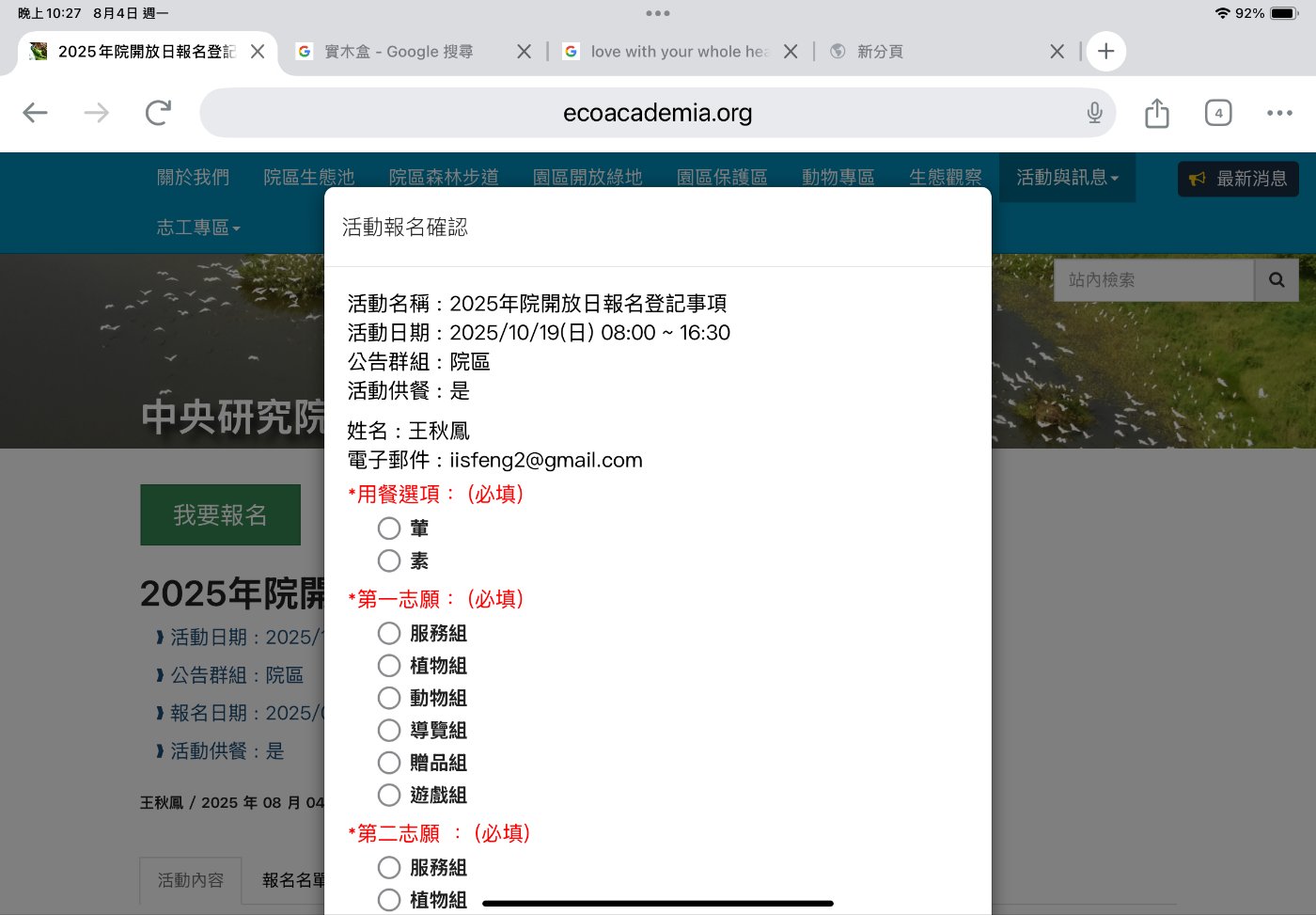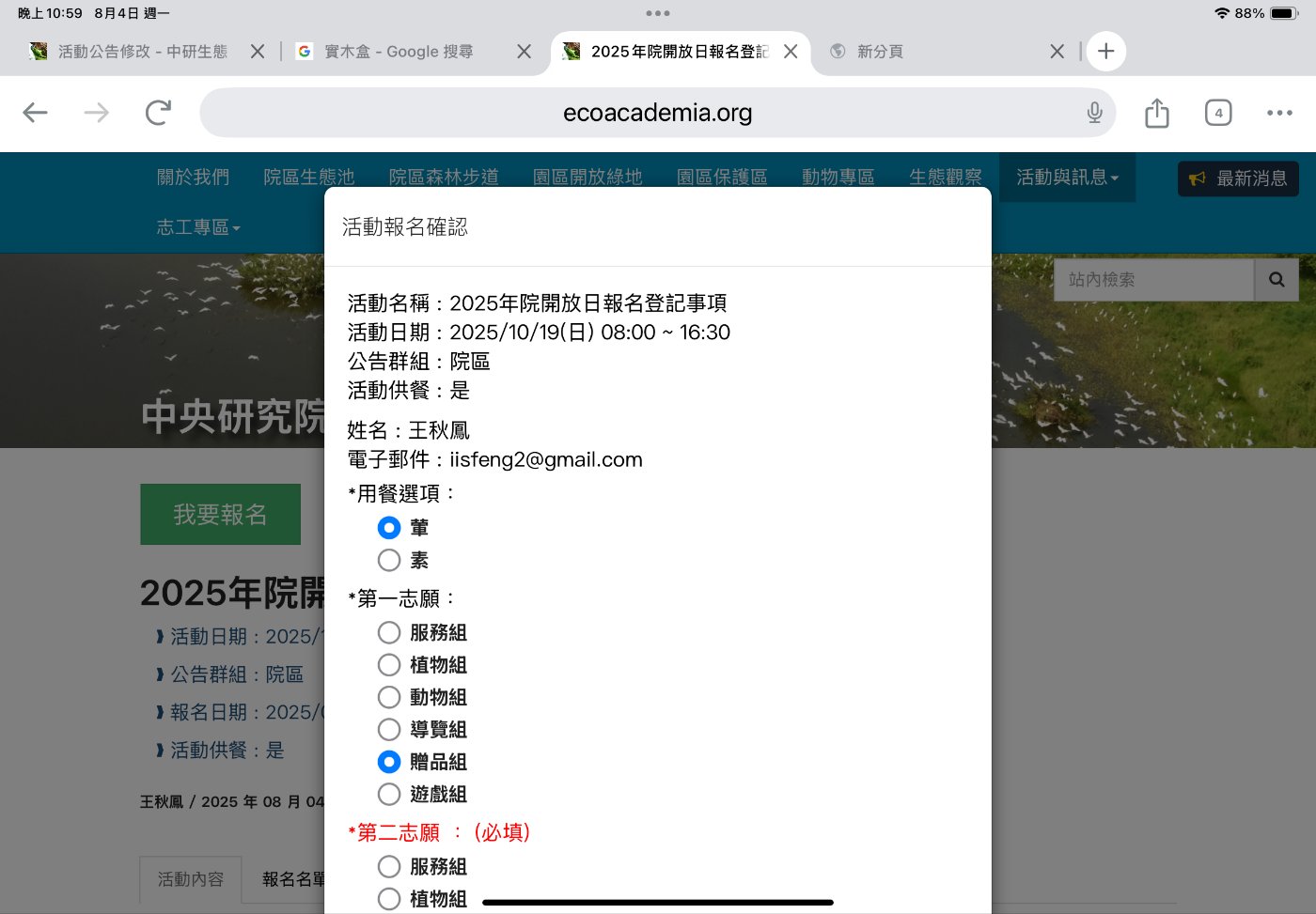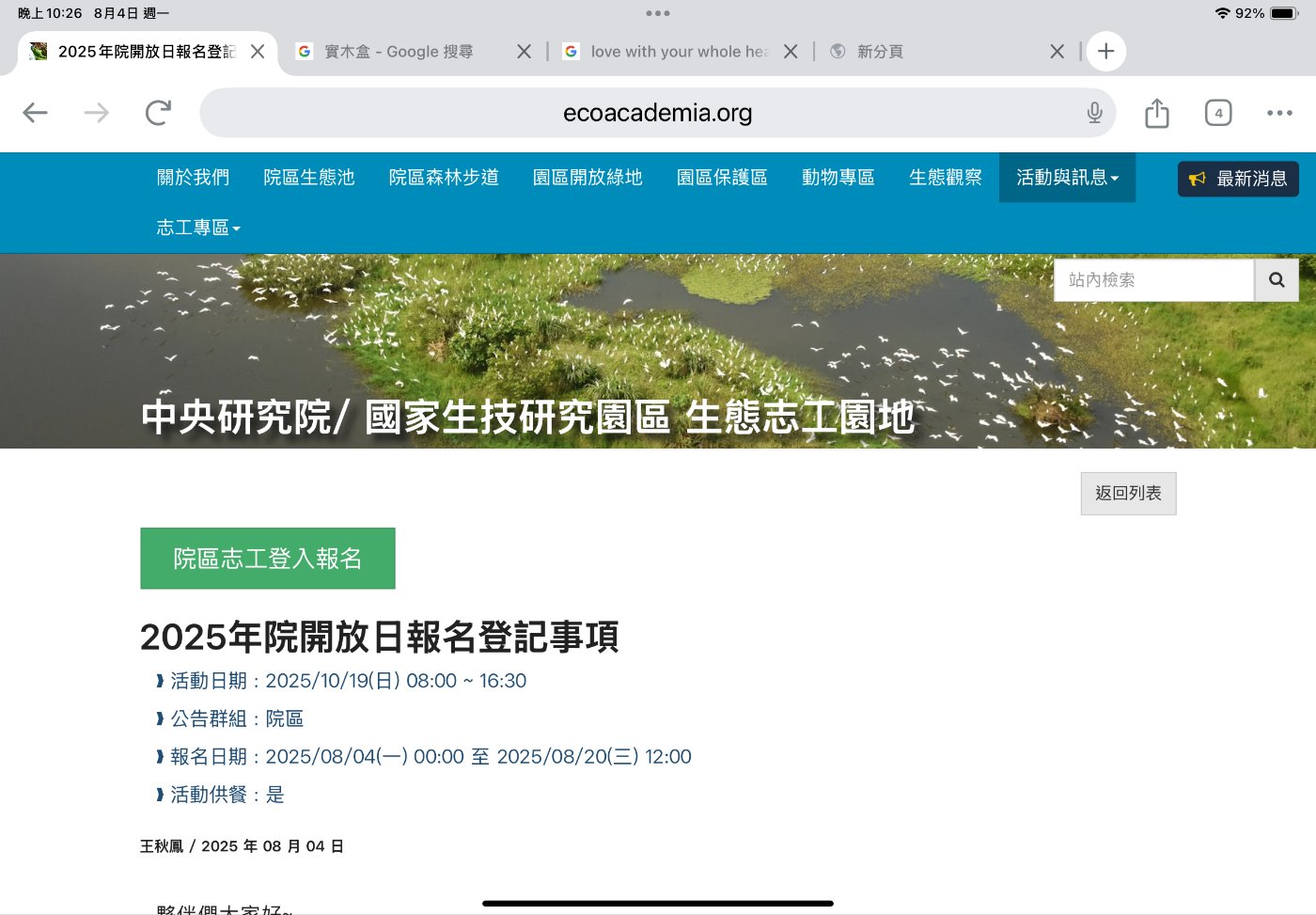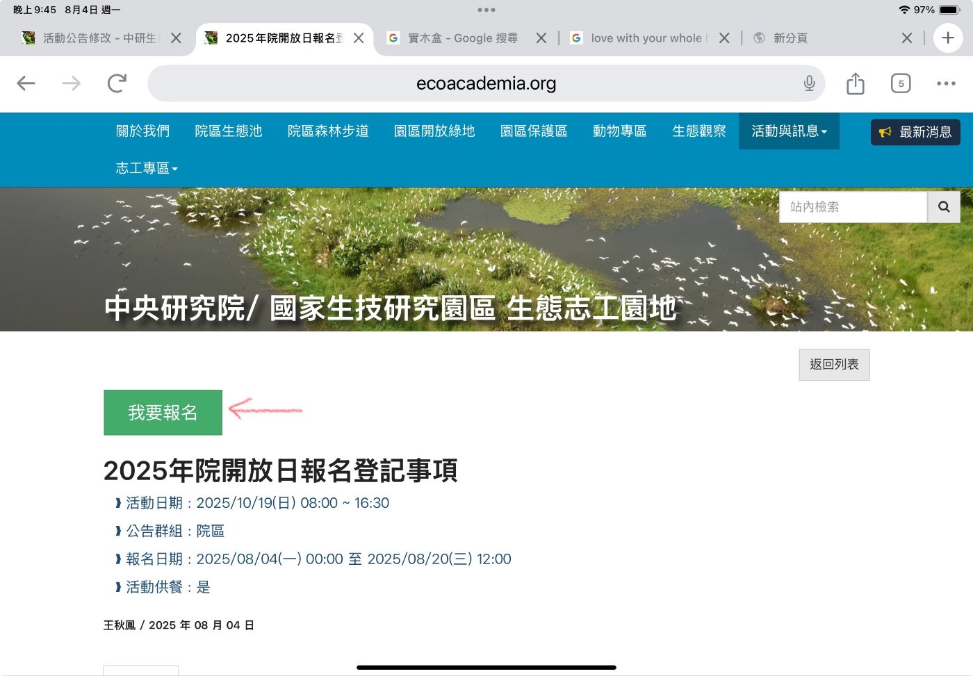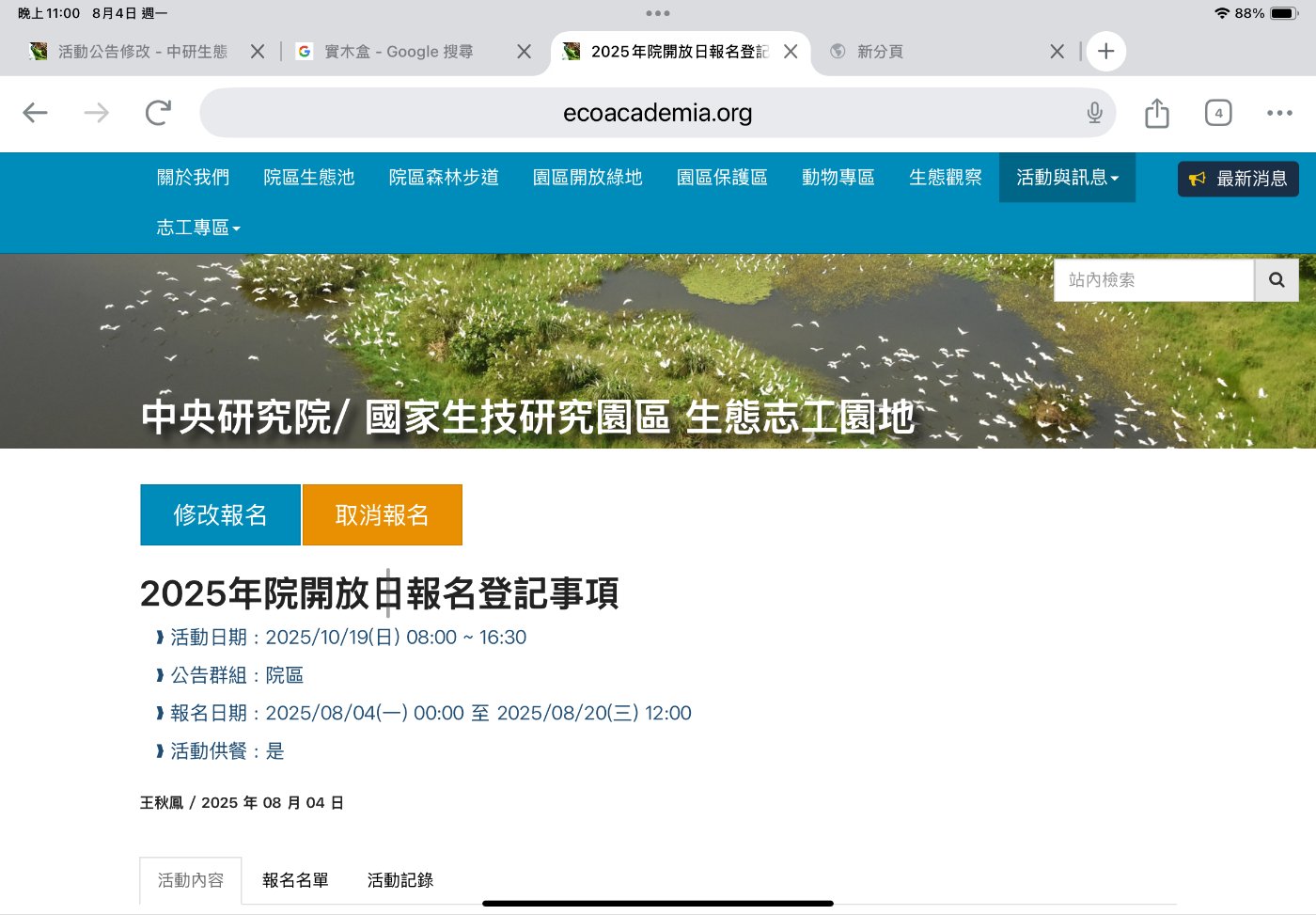 籌備已久的中研院生態志工網站將正式啟用。