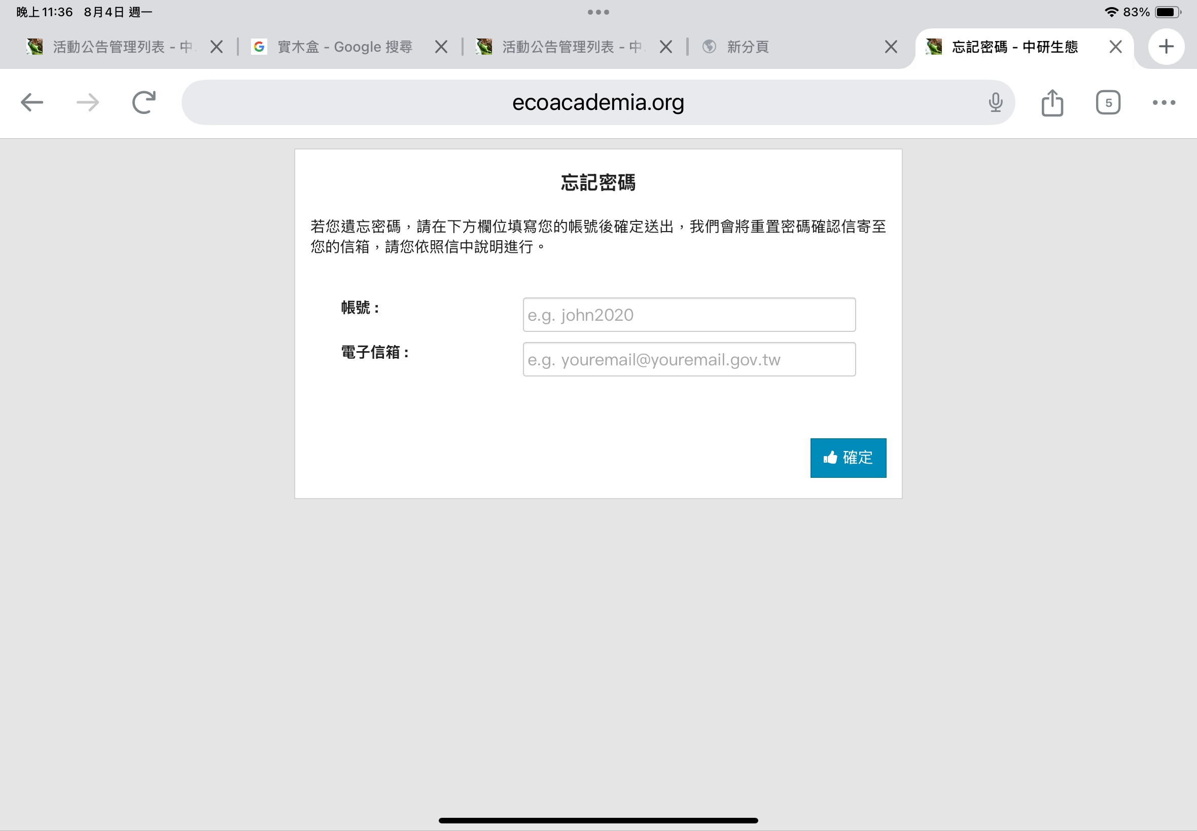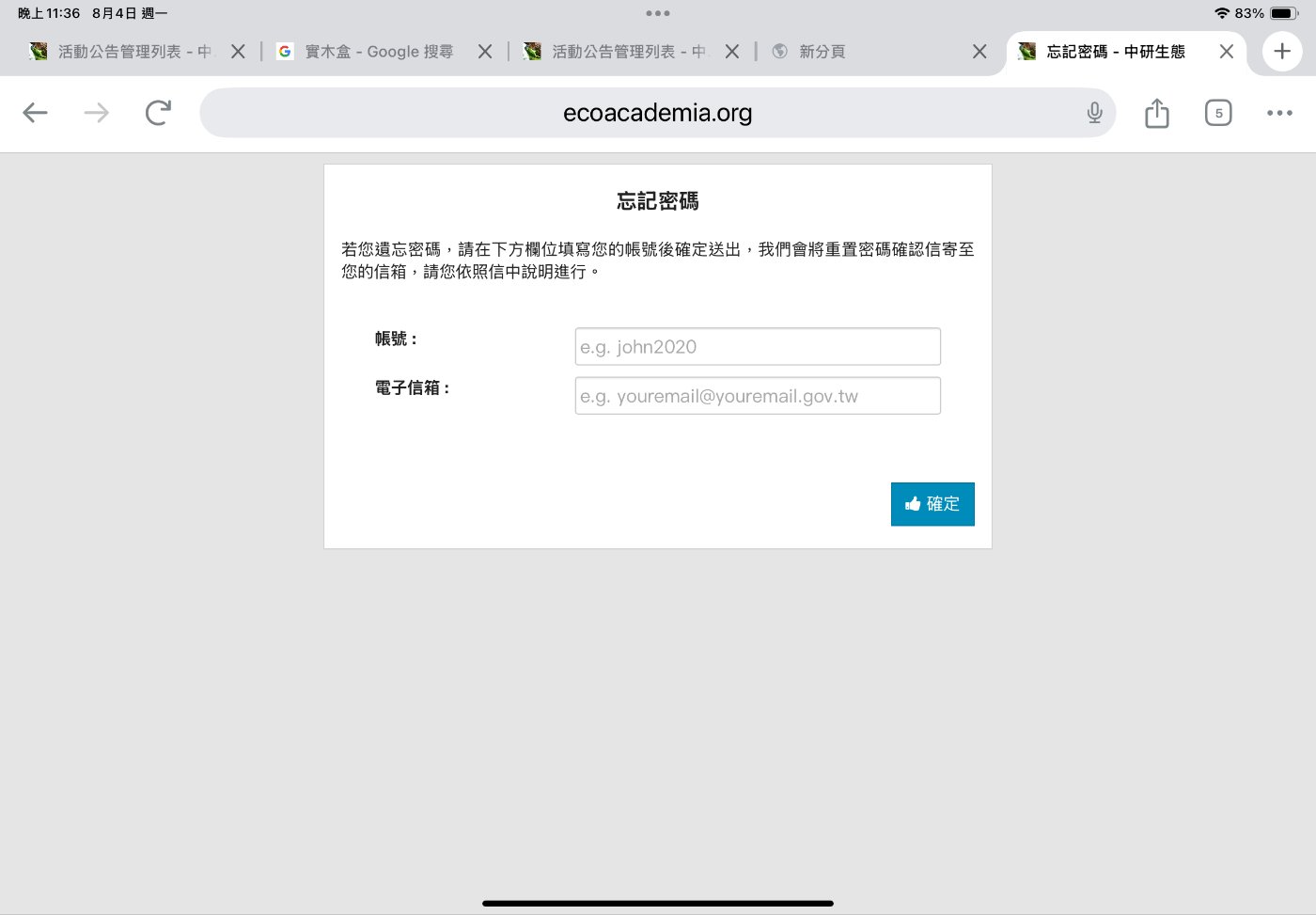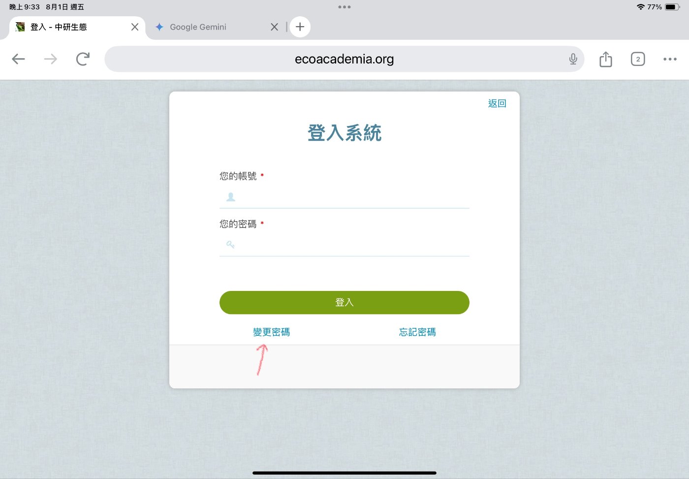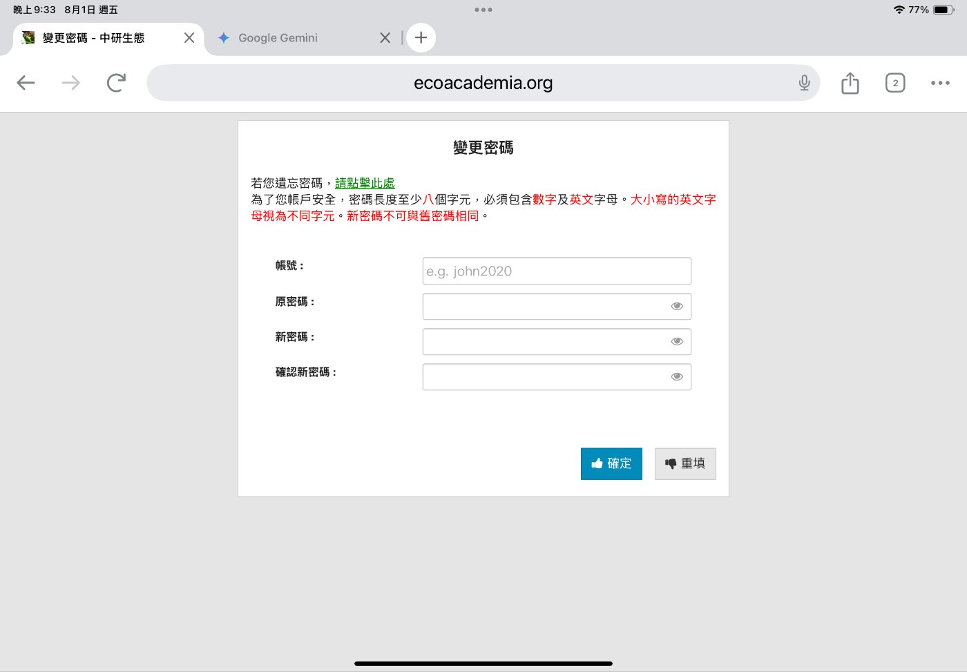 各位收到的Email會有你在生態志工網站的帳號密碼,這一組帳密以後會常用到。各位可以更改成自己喜歡的密碼或者儲存下來。