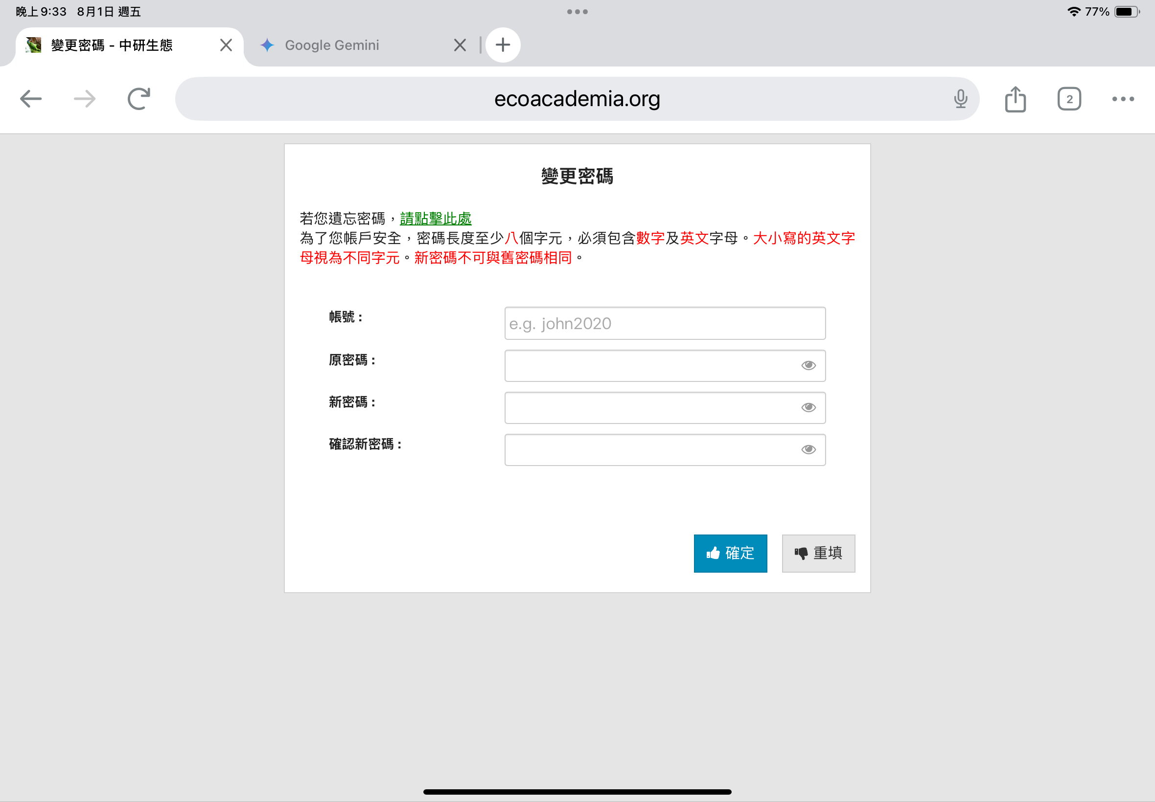 更改密碼或忘記密碼