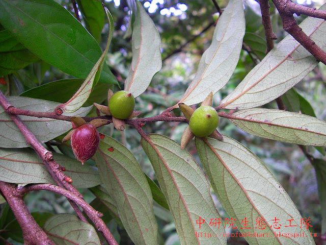 玳灰蝶/恆春小灰蝶產在軟毛柿果實上的卵和幼蟲 |