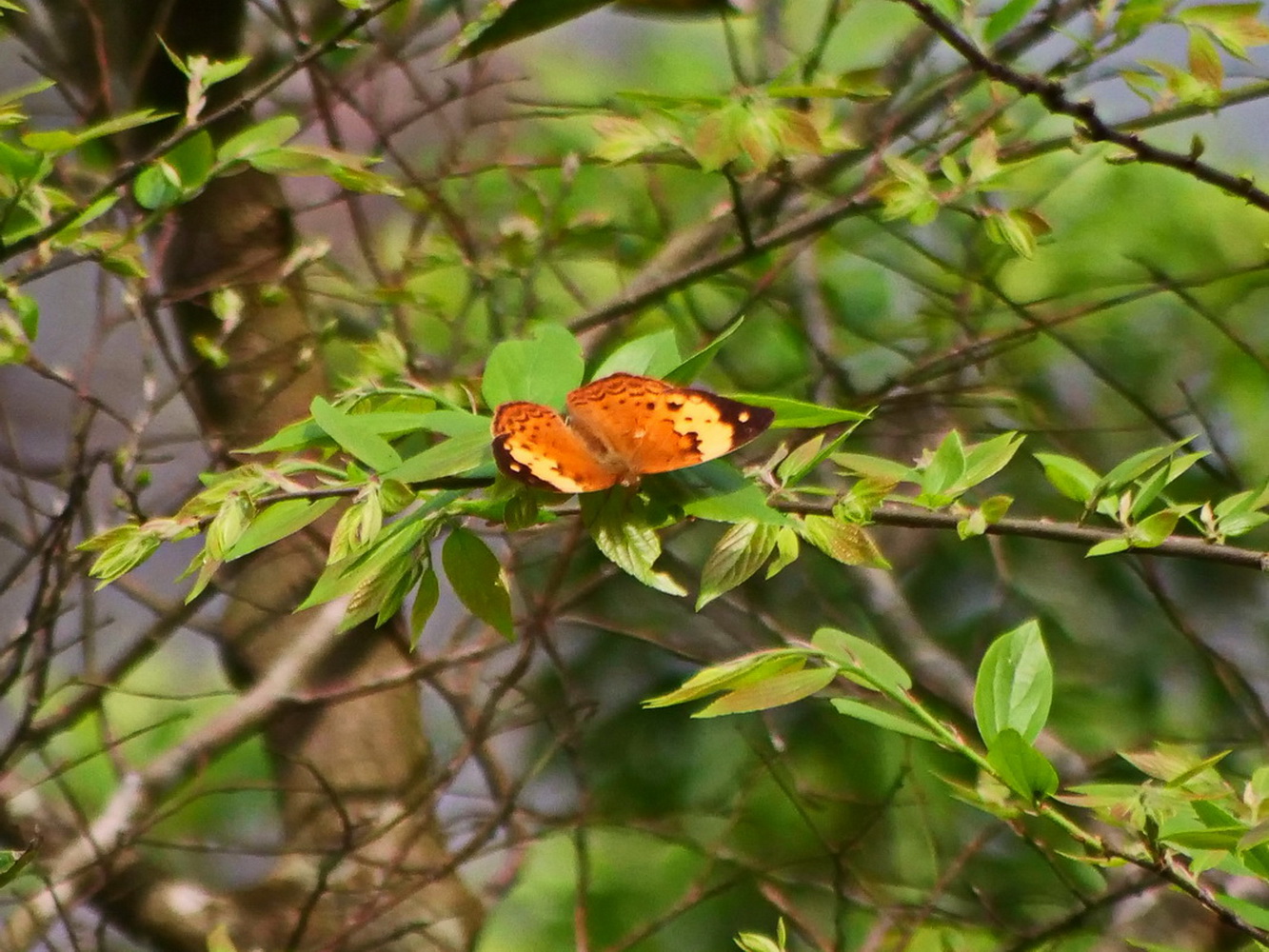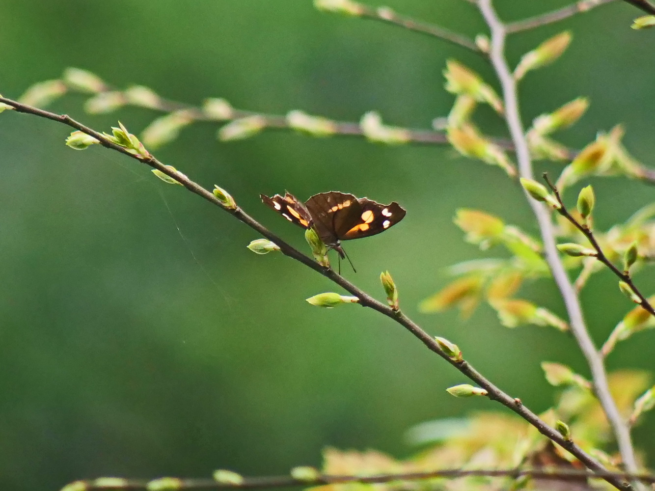 紅星斑蛺蝶(紅斑脈蛺蝶)在朴樹葉上產卵