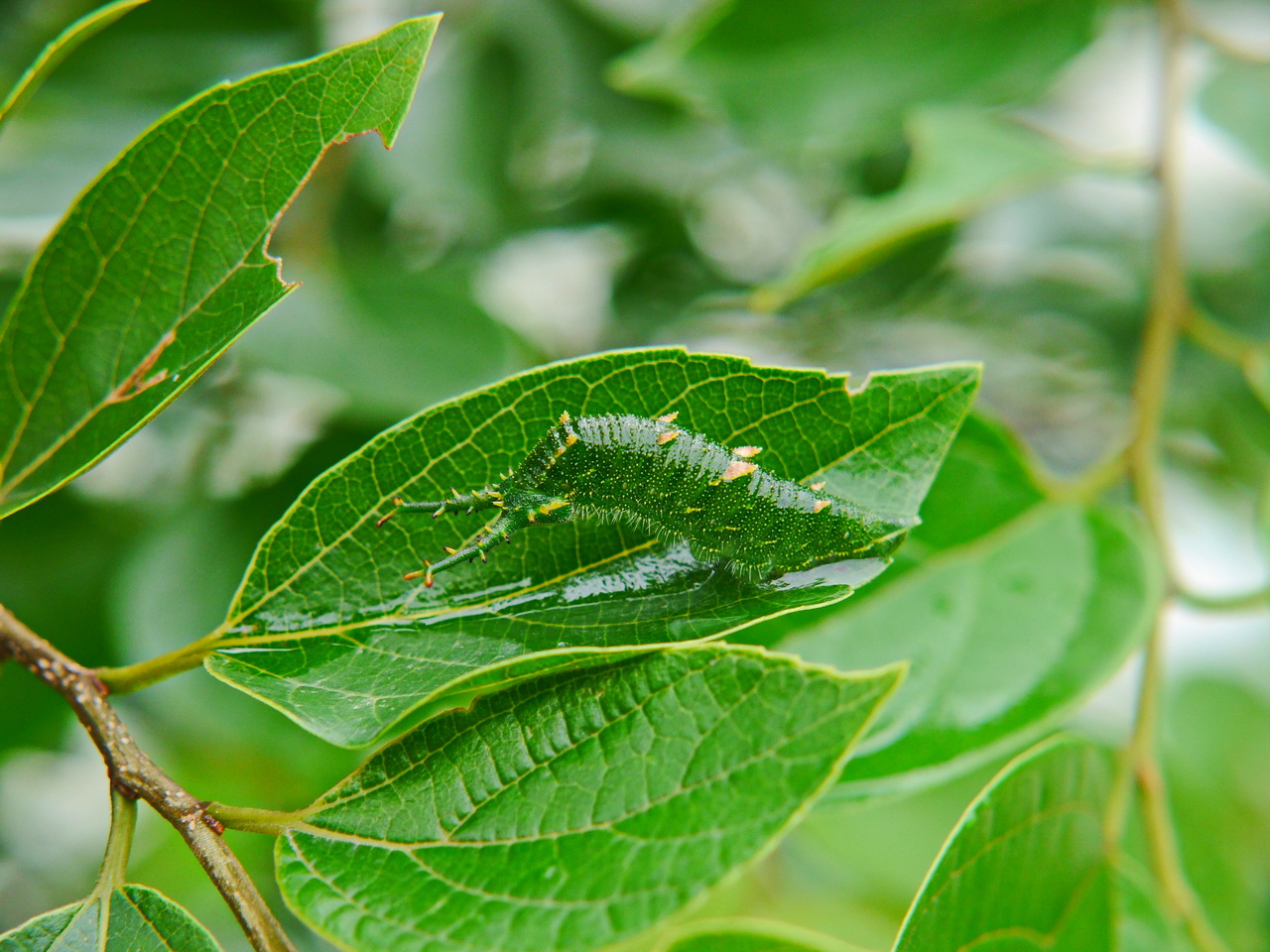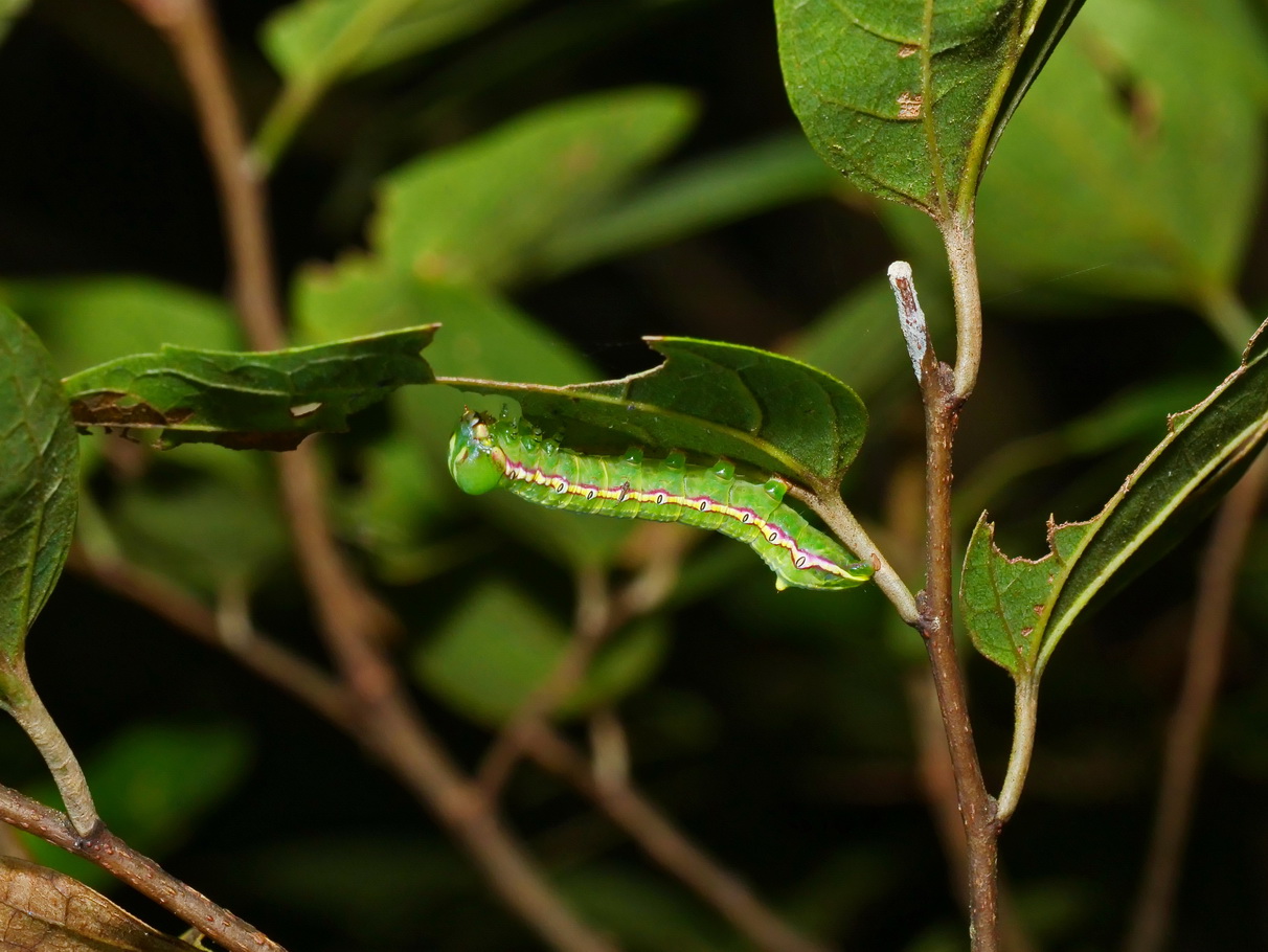 紅星斑蛺蝶(紅斑脈蛺蝶)幼蟲攝食破樹葉