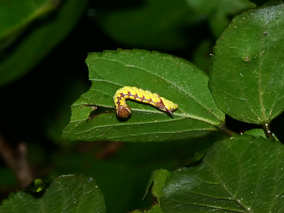 山黃麻木舟蛾幼蟲攝食朴樹葉
