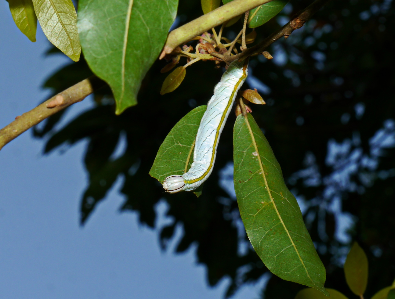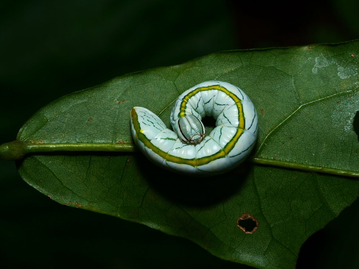 眼紋木舟蛾幼蟲攝食台灣梭羅木的葉子 |