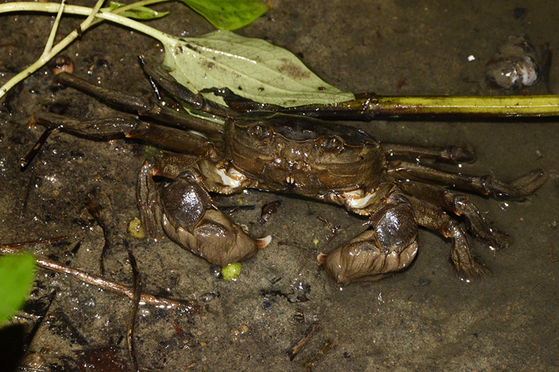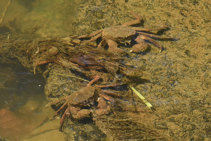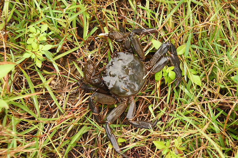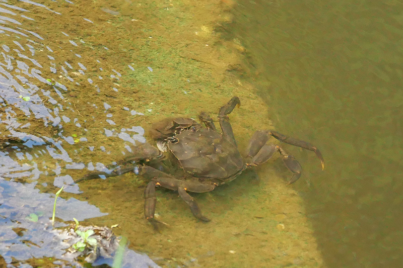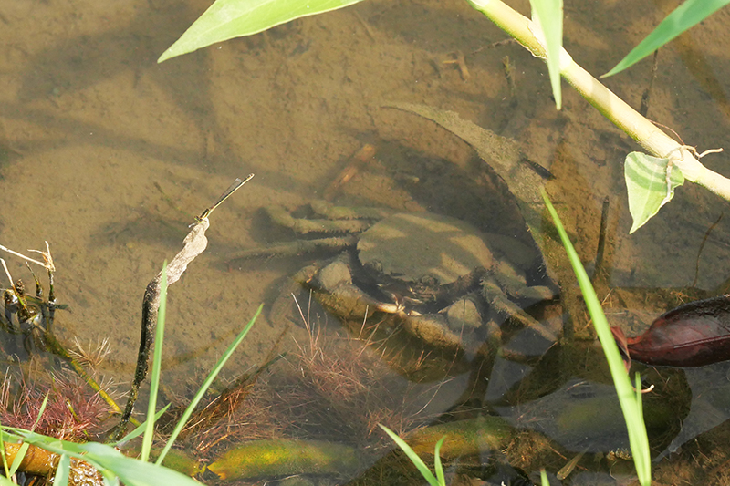 園區生態滯洪池中的毛蟹(日本絨螯蟹)