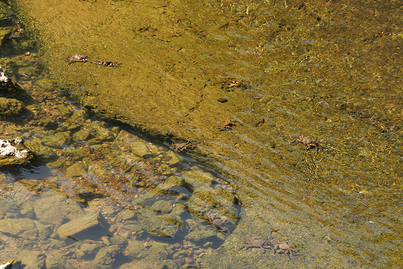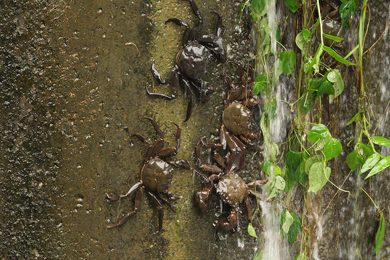 已經到達四分溪岸邊的毛蟹,將繼續往下爬到河床。