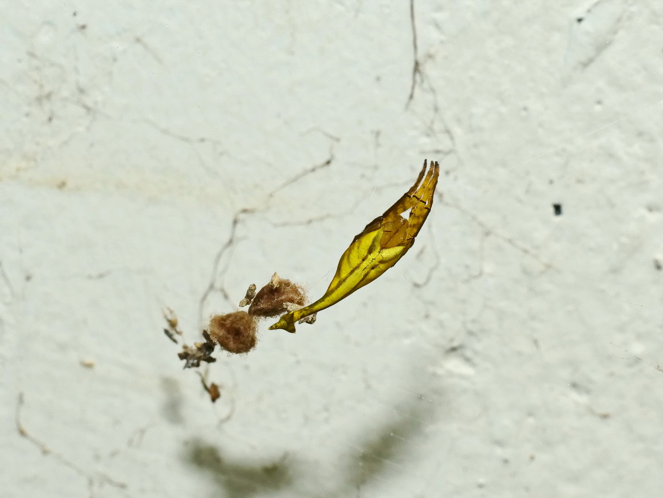 黑尾曳尾蛛黃色型,尾端細長尖突呈三叉狀 |