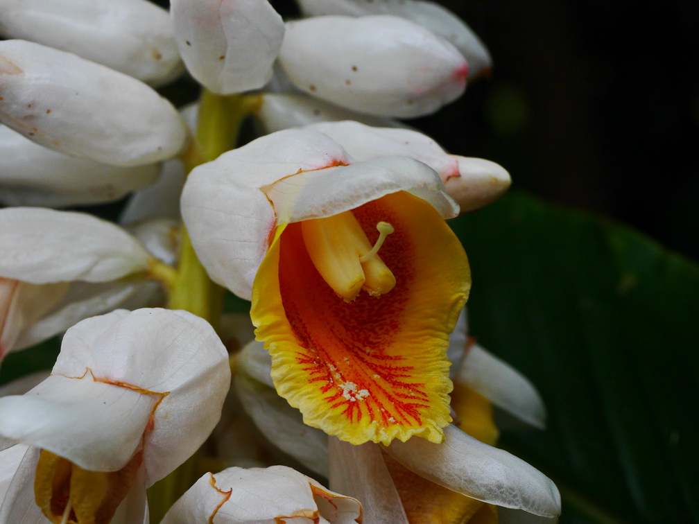 烏來月桃花-以唇瓣最大,色彩最鮮豔,底色深黃並具鮮紅色條紋 |