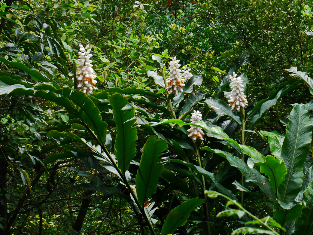 烏來月桃花序軸直立,花由下往上開,綠色苞片脫落 |