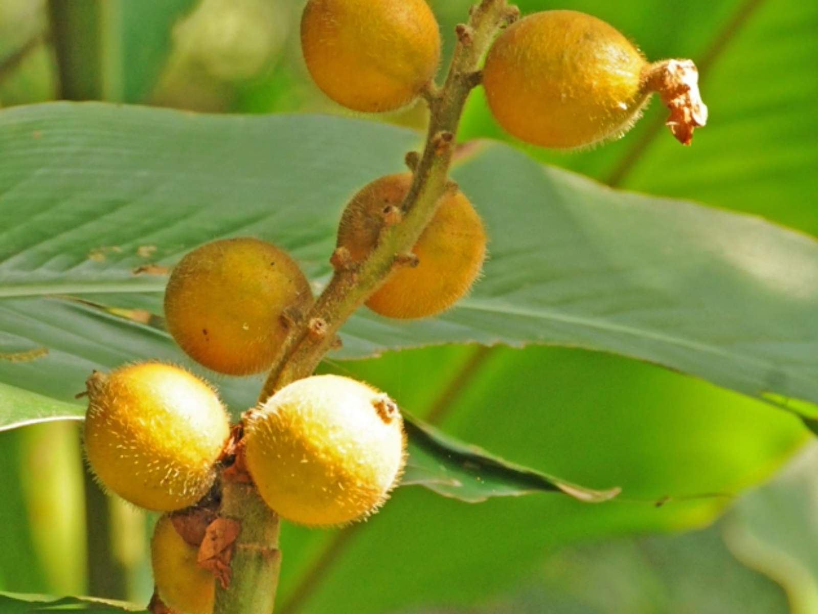 蒴果成熟後黃色,近球形,大小約2.5~3cm;密被白色針毛 |