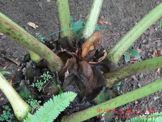 觀音座蓮-葉柄基部的托葉,托葉木質化宿存,宛若觀音菩薩的蓮花座 |
