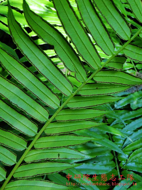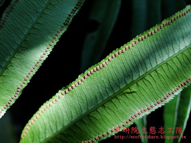 觀音座蓮孢子囊群生於小羽片側脈,接近葉緣 |