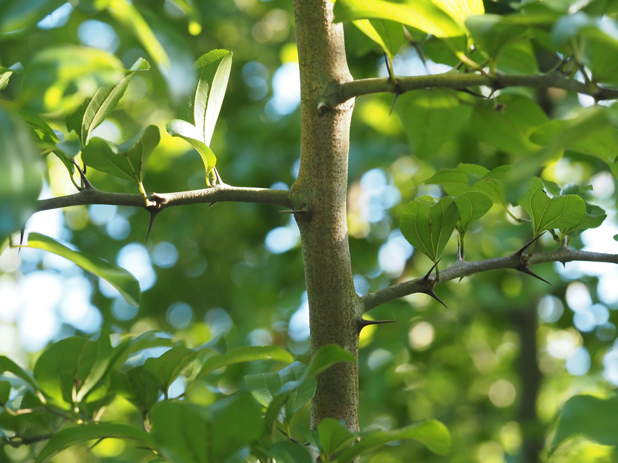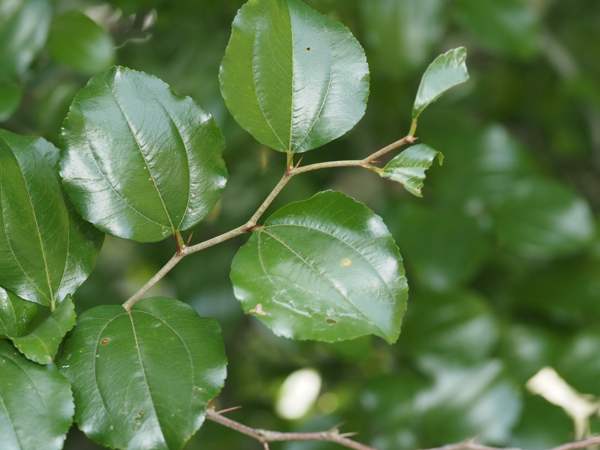 葉子上的刺來自於托葉,所以刺是成對的,鼠李科是薔薇目,薔薇目都有托葉,馬甲子的托葉不一定都會變成刺。