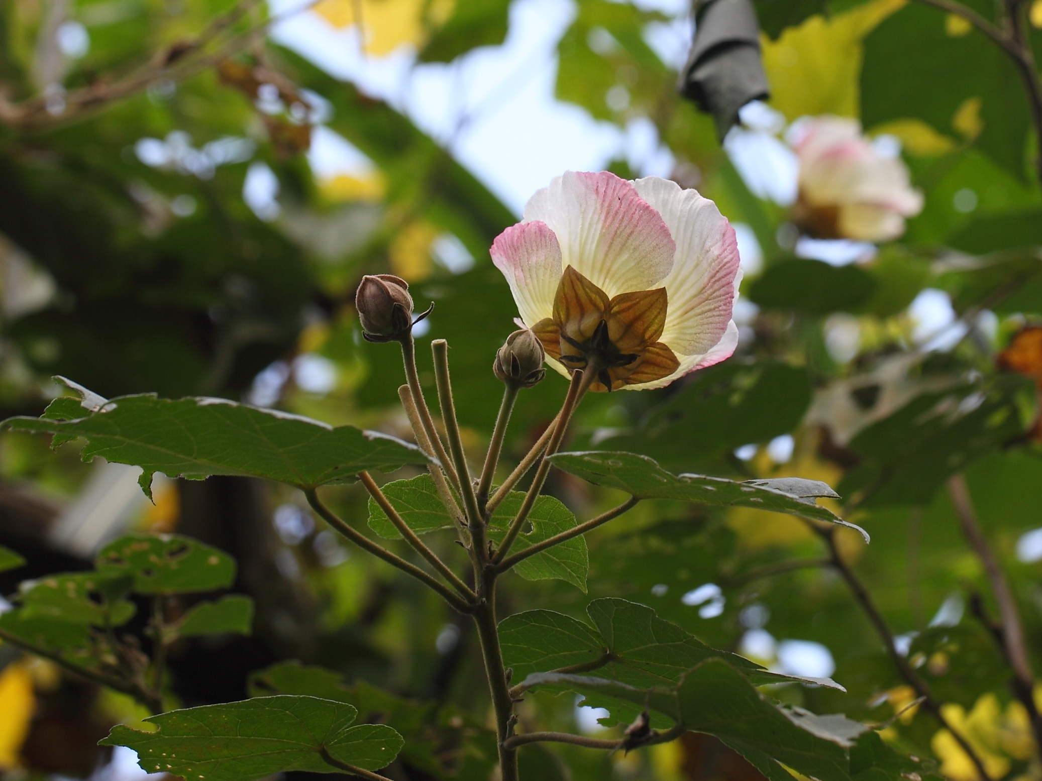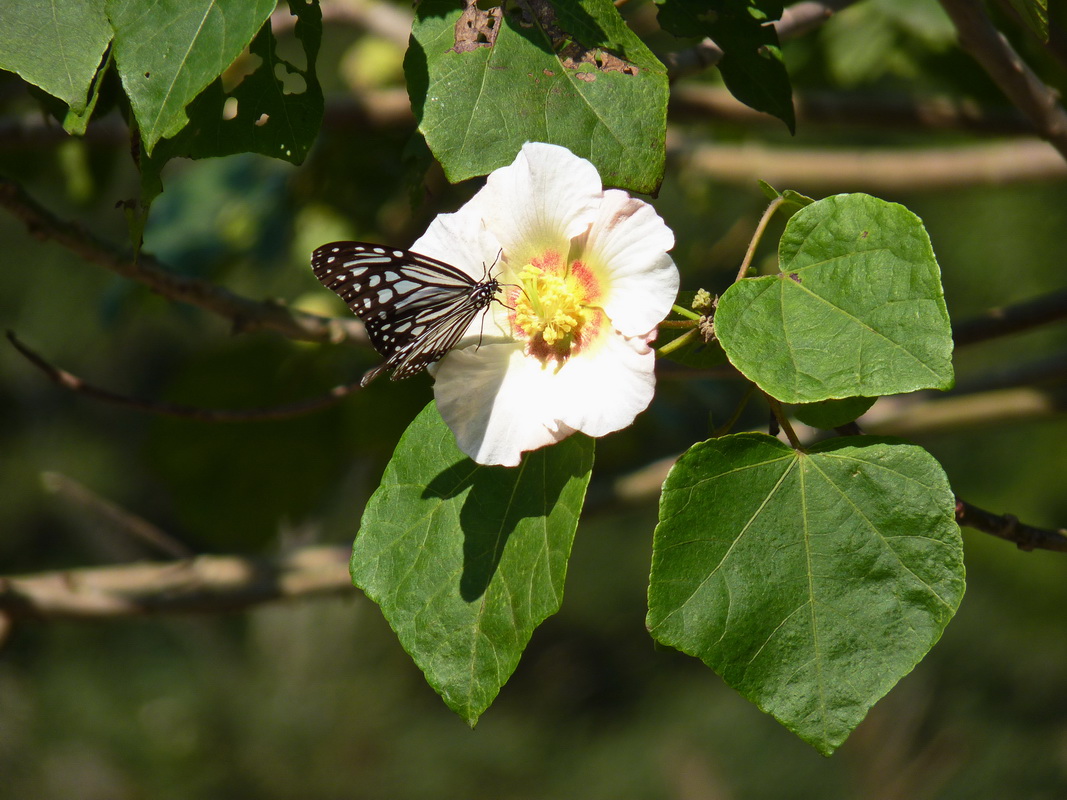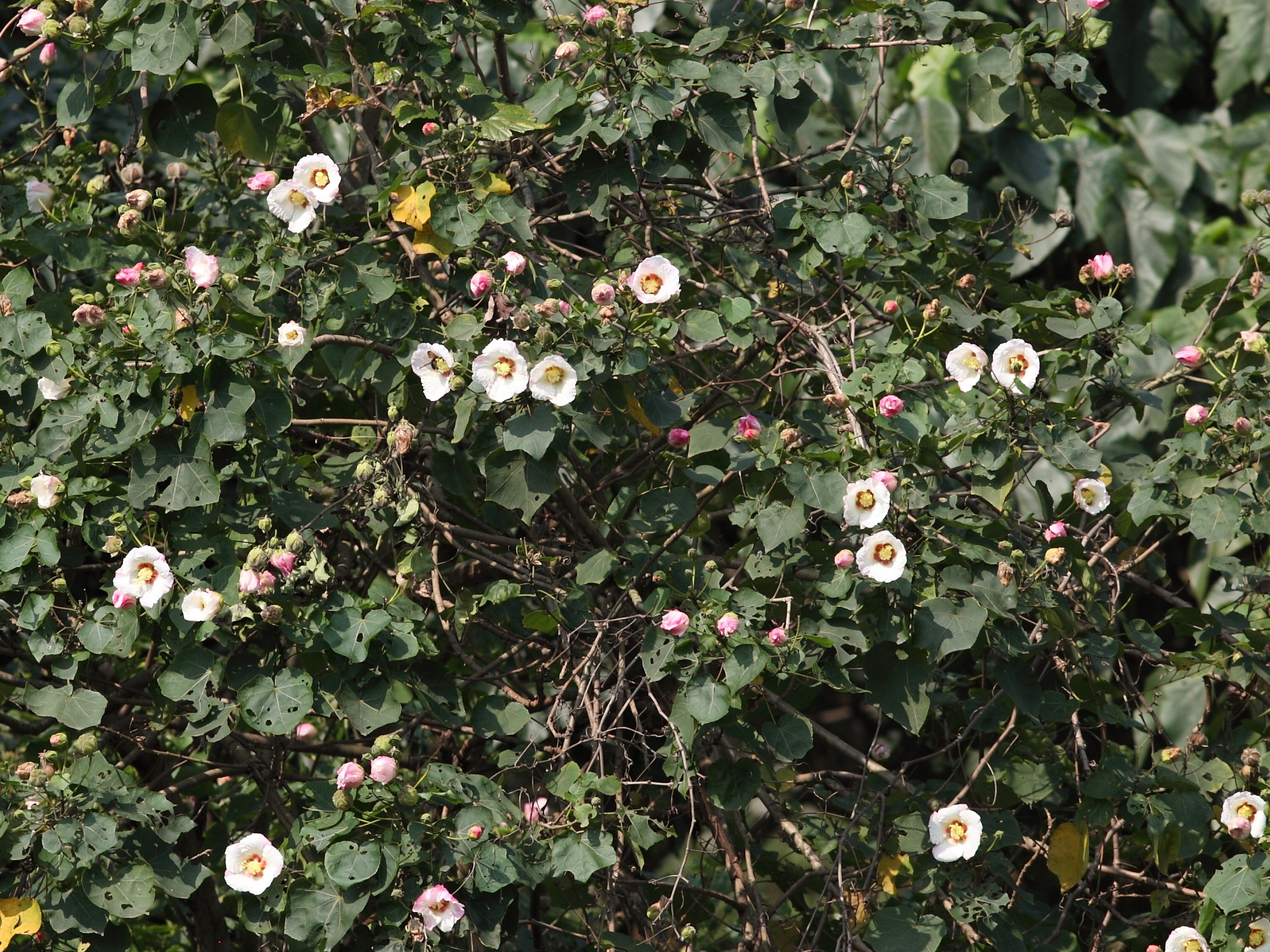 花兩性,腋生或頂生,初為白色,午後變為淡紅色,花萼 5 裂,闊三角狀,副花萼8,線狀形,花瓣5,雄蕊多數,單體,雄蕊筒包圍花柱,花柱5,子房5室。花期11月至隔年1月,海拔越高越早開花,結實率高。蒴果球形,種子多數,果期1-2月。