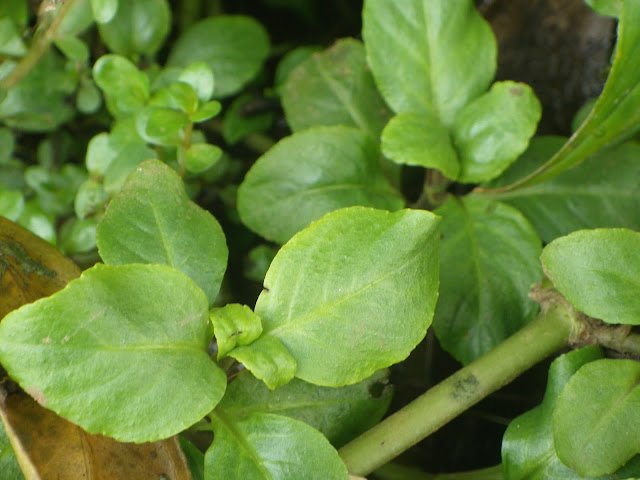 在中研院生態池畔,乍看有點像大一號的九層塔,十字對生的葉子,聞來有濃濃的八角香氣,馬上讓人聯想到可口的滷味,這就是田香草,也稱大葉田香草,顧名思義,它具有較大的葉子,是石龍尾屬的植物中,葉子最大的,所以別名「大葉石龍尾」。早期主要分布於水田,且具有香味,又稱水八角、水胡椒、水香菜、水茴香。喜歡生長在半日照下的池塘、稻田、沼澤等濕地環境,常形成一大片族群,然而近年來化學除草劑的大量使用,野外已不多見。