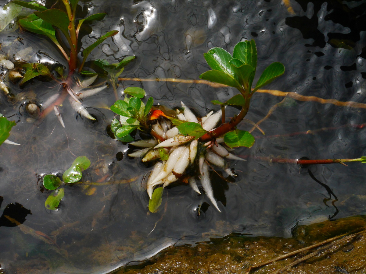 枝葉都漂浮在水上的根則會有海綿狀氣生根,生長在土裡的根則不會膨大。