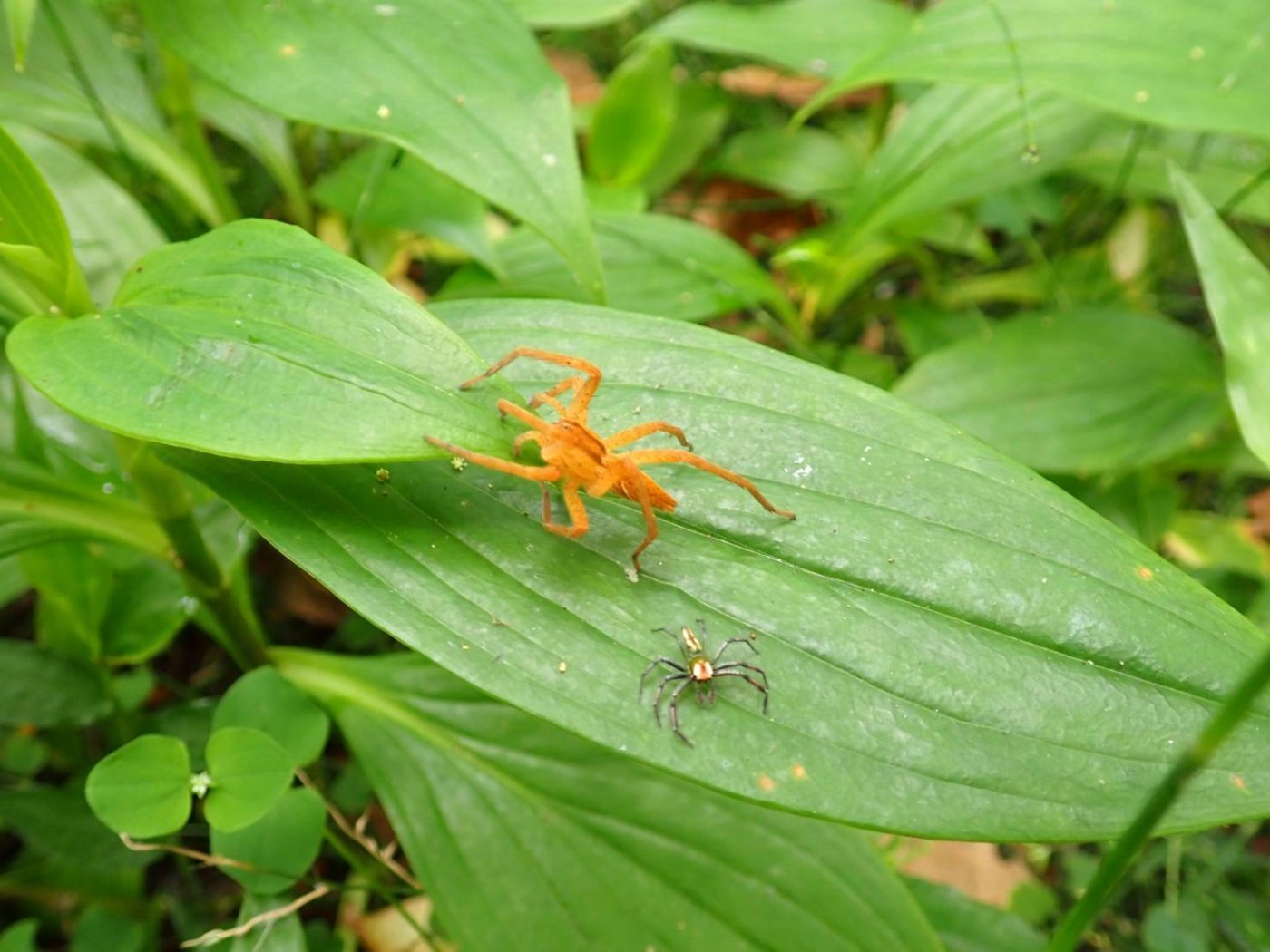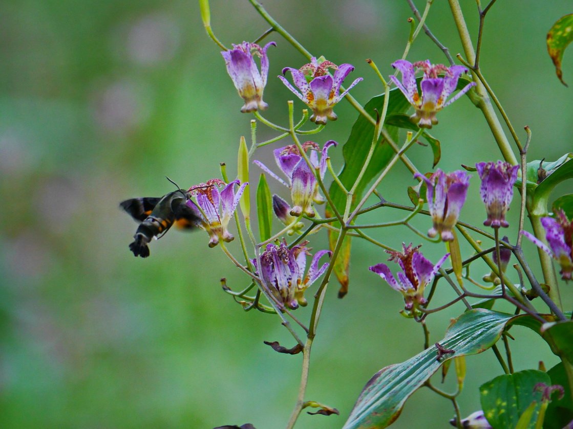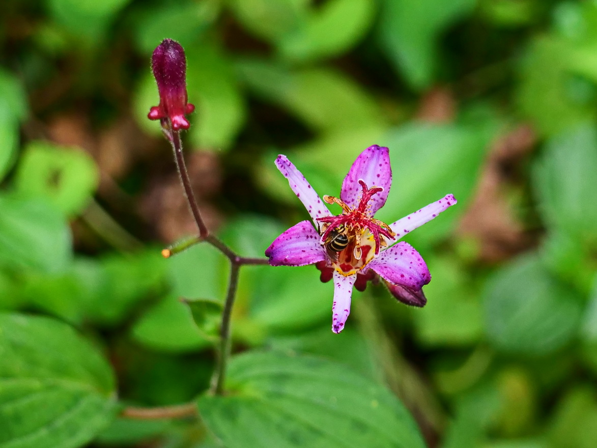 臺灣油點草的花總是吸引許多昆蟲來吸花蜜,也會引來食蟲的獵食者。
