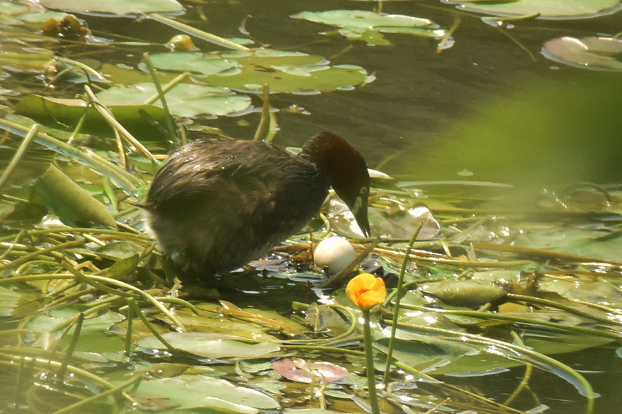 小鸊鷈在台灣萍蓬草上下蛋 (陳宗憲攝) |